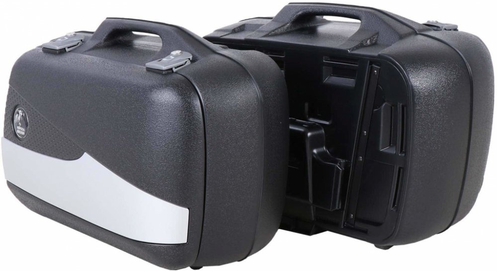 Rozsah dodávky: levý + pravý + 2x uzamykací adaptér pro připevnění kufrů k nosiči bočních kufrů Hepco&Becker.