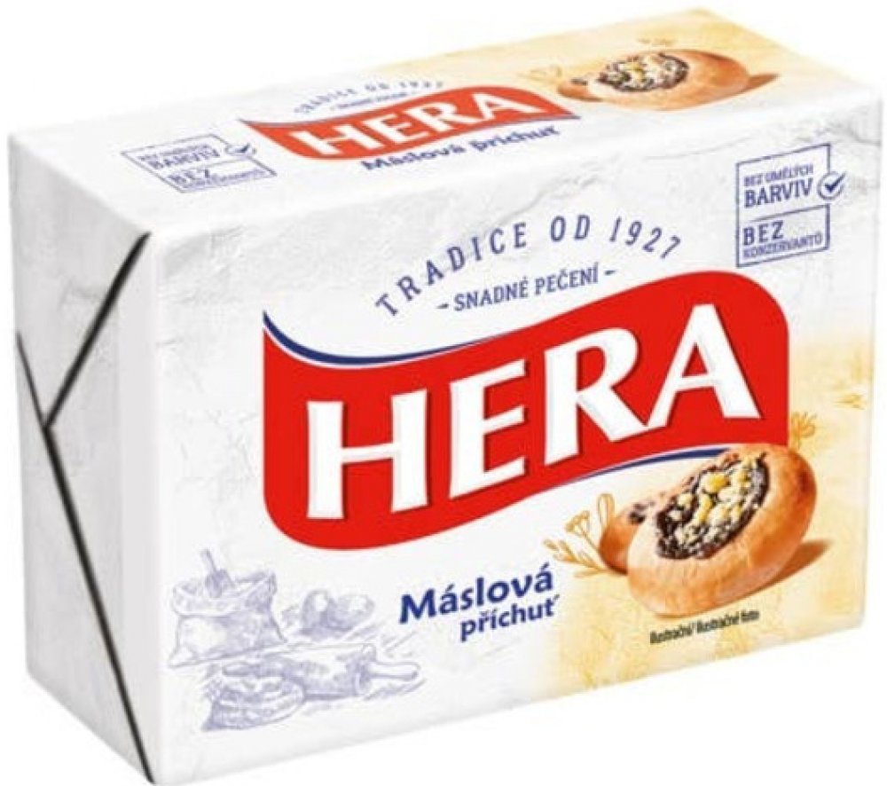 -- Rostlinný roztíratelný tuk (70%) na pečení, vaření a přípravu krémů. Bez barviv, bez konzervačních látek. Bez mléčné složky.O značceHera je tradiční značka, která je již 90 let symbolem poctivého pečení. Její první kapitola se začíná psát roku 1928…