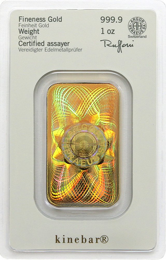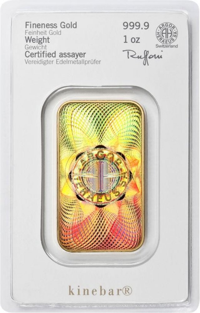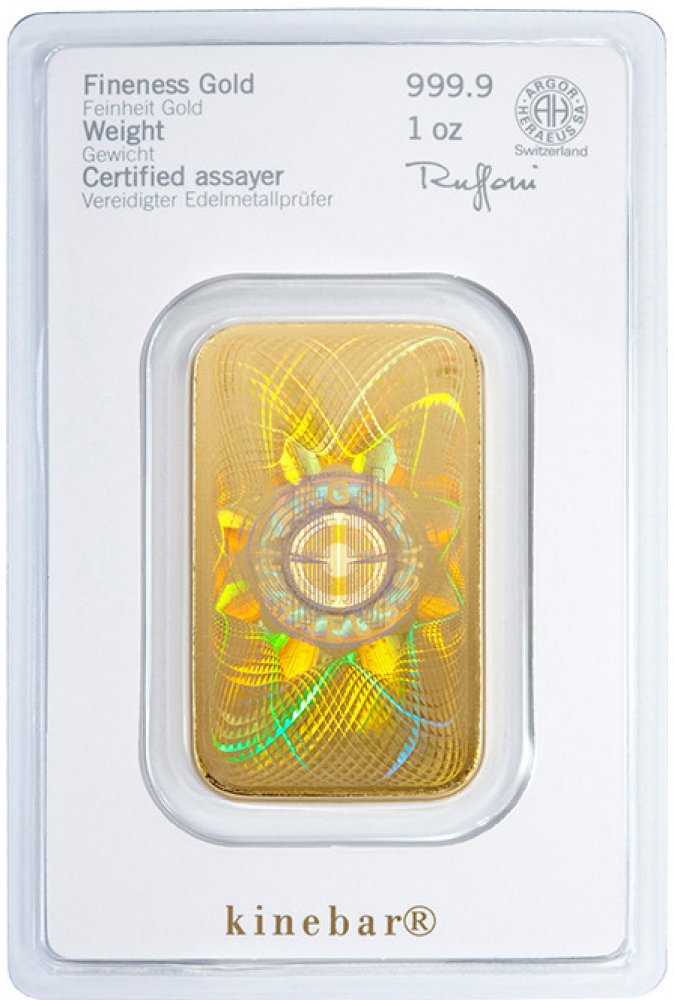 Investiční zlato - zlatý slitek Heraeus Kinebar (s ochranným prvkem Kinegram)
