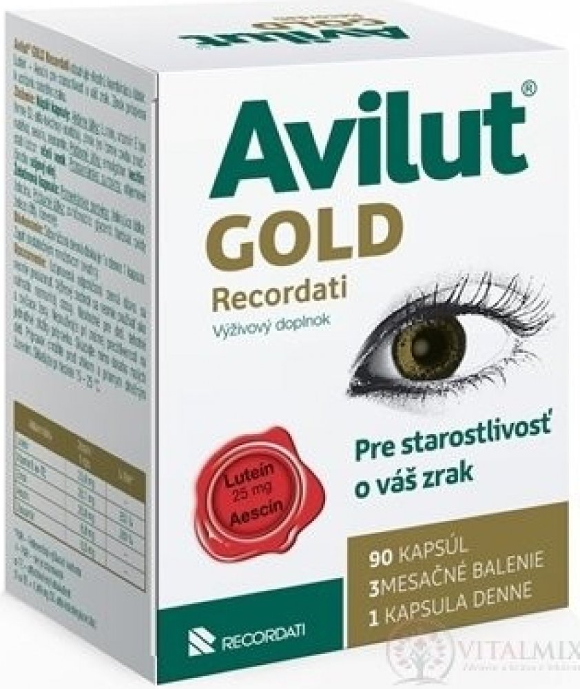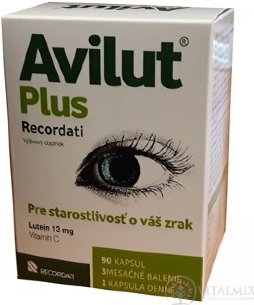 Recordati 90 tbl kapsle zrak unisex Avilut pro dospělé perorální bez příchutě lutein zrak, uši a ústa 90 Kdykoliv 1 za den Pokojová teplota (do 25°C), Suché místo + pokojová teplota, Chránit př