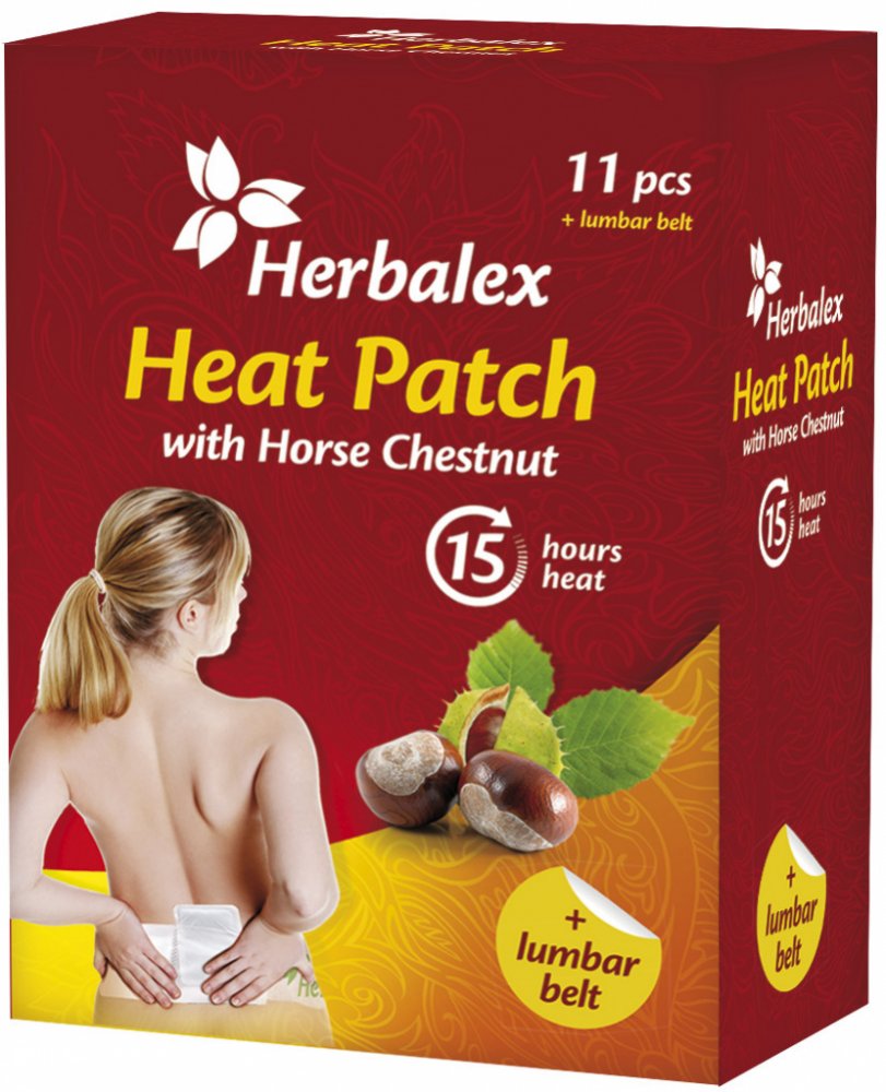 Herbalex hřejivá náplast s kaštanem přináší pocit úlevy a prohřátí pokožky v oblasti namáhaných zad, ramen, beder či svalů. Dochází tak působením suchého tepla, které je dlouhodobě známo pro své příznivé účinky na pohybový aparát. Po vyjmutí náplasti z ochranného (prodejního) obalu začnou aktivní látky obsažené v polštářku reagovat s kyslíkem, díky čemuž se náplast rozehřeje. Hřejivý efekt se na c...