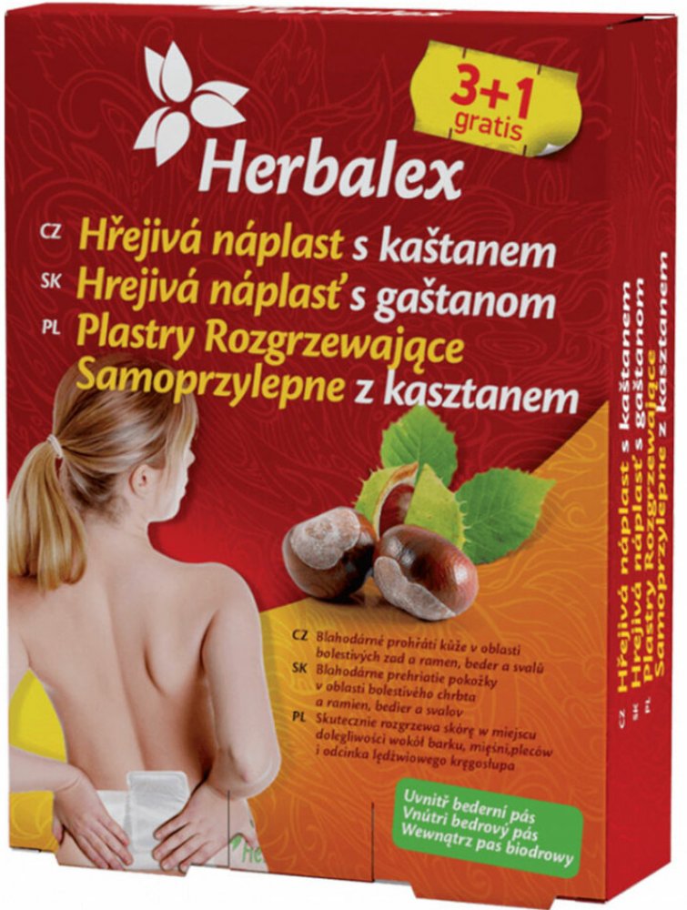 Herbalex Hřejivé náplati s kaštanem 4 ks + bederní pás