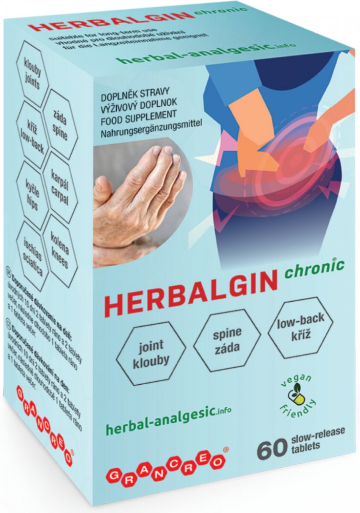 Pharco 60 tbl tablety klouby, kosti, svaly unisex 100 g Herbalgin pro dospělé perorální od 12 let bez příchutě kosti a klouby s postupným uvolňováním 30 1 tableta ráno a 1 tableta večer Nespecifikováno