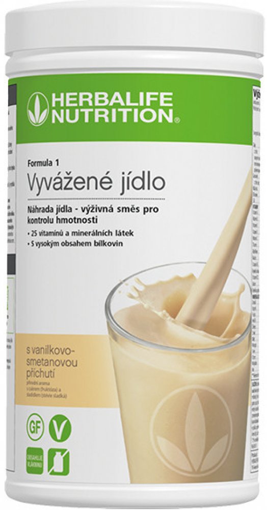 Formula 1 Herbalife - Vyvážené jídlo - náhrada jídla pro kontrolu hmotnosti - 25 vitamínů a minerálních látek (včetně vit. C a D) - s vysokým obsahem bílkovin - bezlepkový - vhodný pro vegany - neobsahuje žádná umělá barvivaVýživné, lahodné a pohodlné jídlo ve sklenici. Přípravek vyvinutý na základě vědeckých poznatků Herbalife. Výrobek poskytuje nezbytné živiny prostřednictvím kvalitních ingrediencí. Poskytuje vynikající rovnováhu vysoce kvalitního sójového proteinu, vlákniny, vitamínů a minerálů.Vychutnejte si Herbalife Formula 1 jako výživnou snídani, oběd nebo večeři pro podporu vašeho aktivního životního stylu a vašich cílů v oblasti regulace váhy.