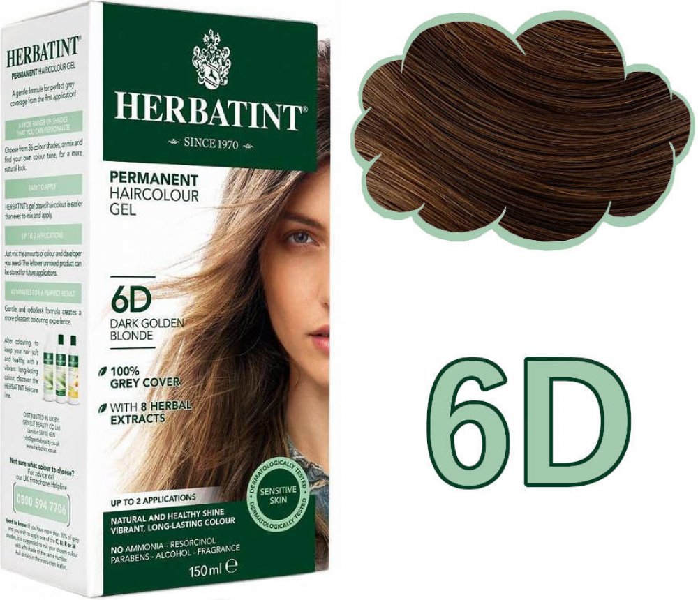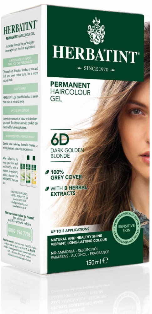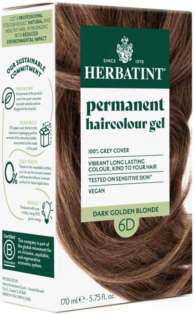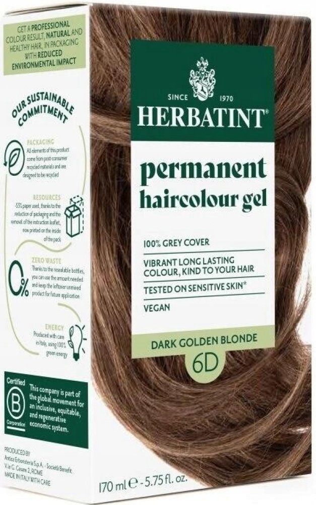 Herbatint permanentní barva na vlasy tmavá zlatavá blond 6D 150 ml