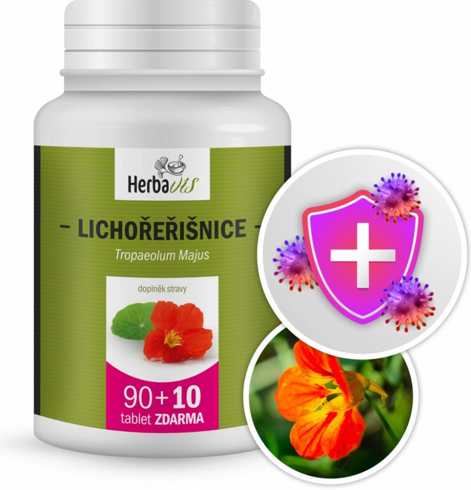Herbavis 100 tbl tablety imunita unisex 33.0 g pro dospělé perorální od 3 let bez příchutě Česká republika lichořeřišnice imunita a obecné zdraví s postupným uvolňováním 50 100.0 mg Kdykoliv 1 tableta 2× denně Pokojová teplota (do 25°C), Mimo dosah dětí