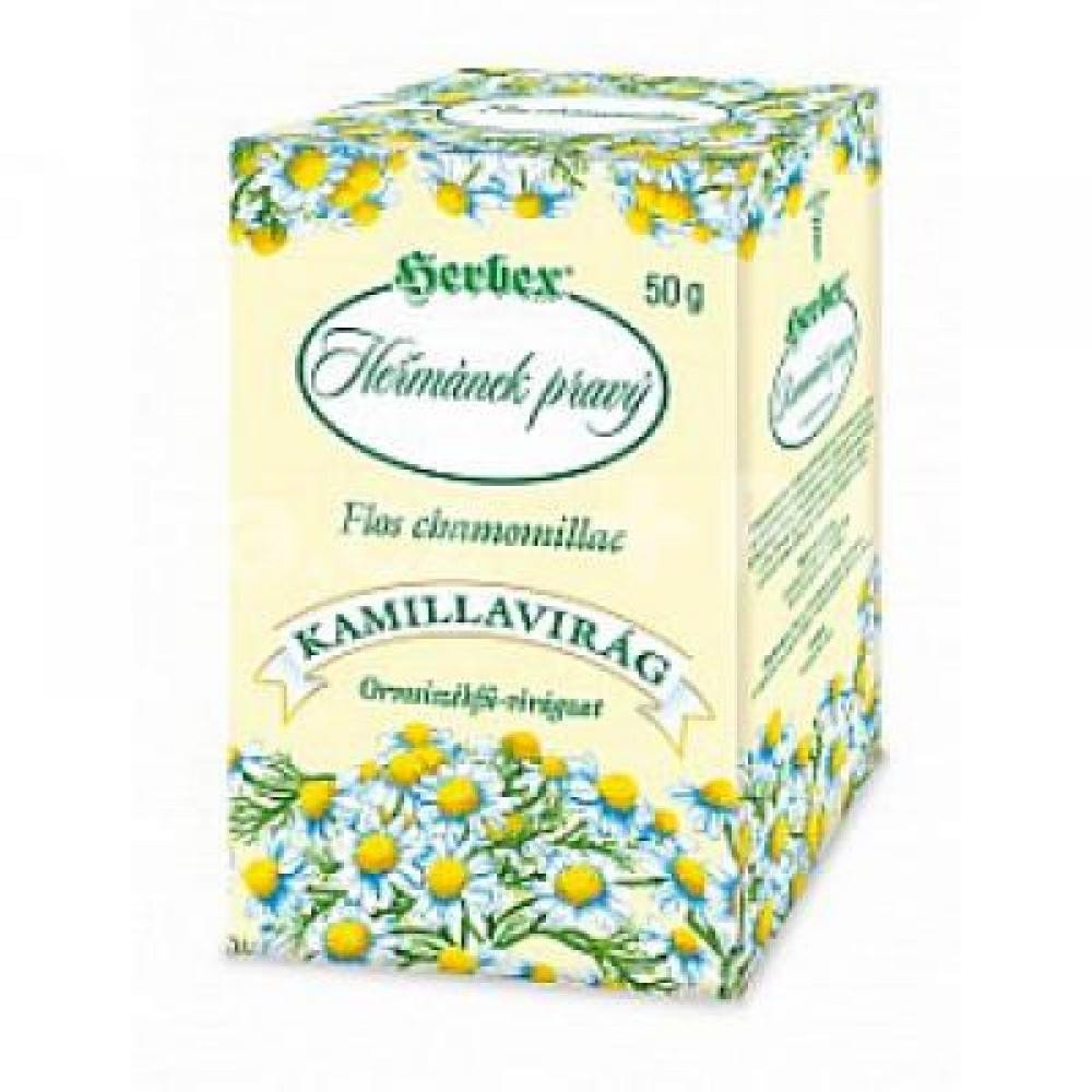 Herbex Heřmánek lékařský je sypaná čajová směs s obsahem heřmánku. Heřmánek podporuje správné funkce dýchacího systému, přispívá k normálnímu trávení a k normálnímu stavu pokožky. Přispívá také k přirozené obranyschopnosti.Balení obsahuje 50 g sypaného heřmánkového plodu.