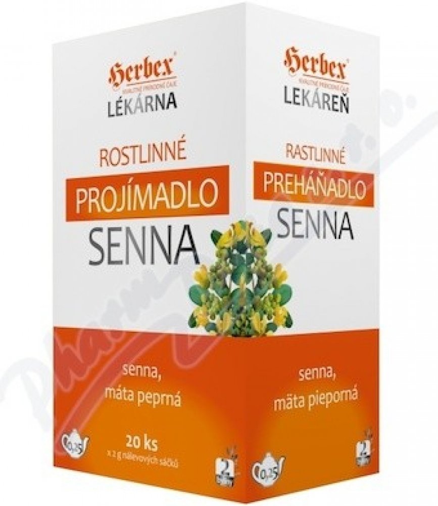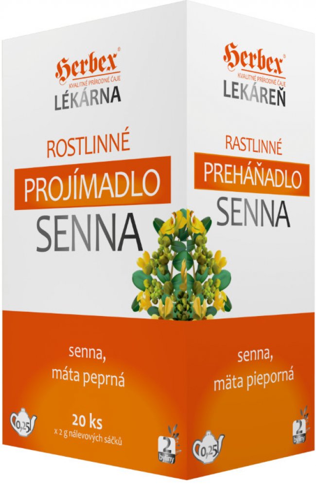 Herbex lékárna Rostlinné projímadlo Senna je bylinný ve formě nálevových sáčků, který obsahuje listy senny a mátu peprnou (nať).