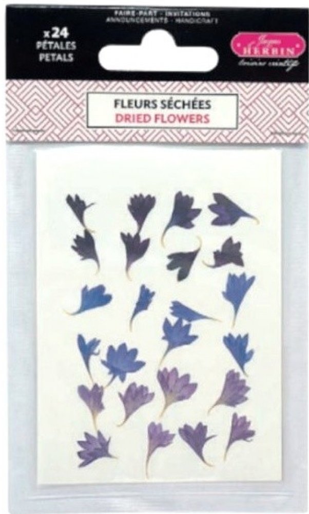 Skutečné sušené květiny lisované, vhodné k dekoraci nejrůznějších předmětů, např. mýdla, ručního papíru, papírové drtě, přání apod. Sušené květiny lze také lepit pomocí lepidla na předměty jako dřevo, lepenku. papír apod. Vhodné i na pečetění. Velikost archu 7x10cm.