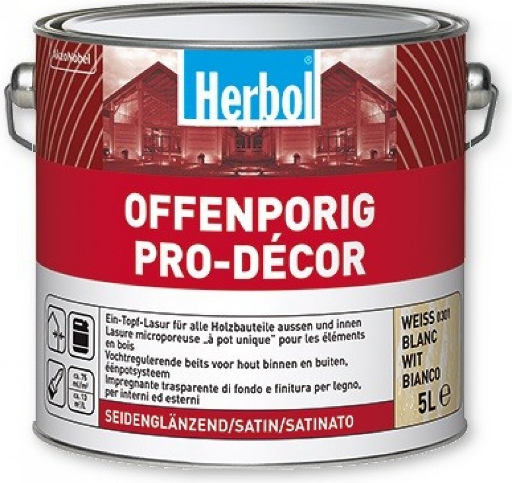 Herbol Offenporig Pro Décor je nestékavá syntetická lazura na dřevo pro interiér a exteriér s velmi silnou ochranou dřeva před povětrností a UV zářením, kterého díky patentově chráněnému UV filtru dokáže odrazit až 99 %. Nátěr je elastický a vysoce prodyšný pro vodní páry směrem od dřeva. Výsledný vzhled je velmi přirozený s hedvábným leskem.