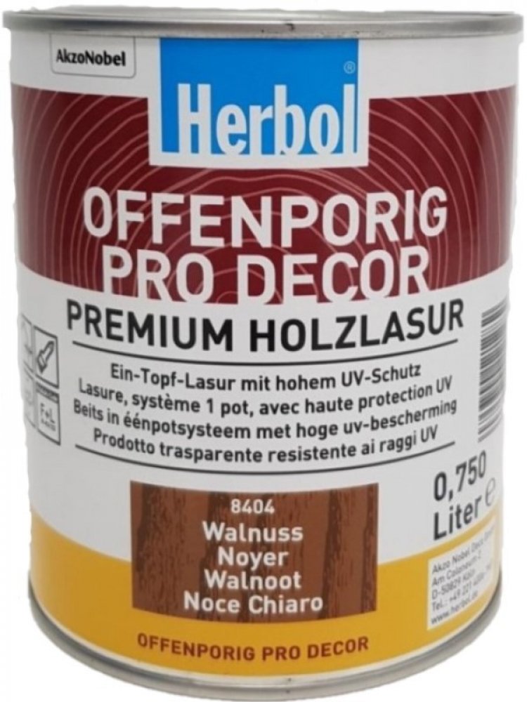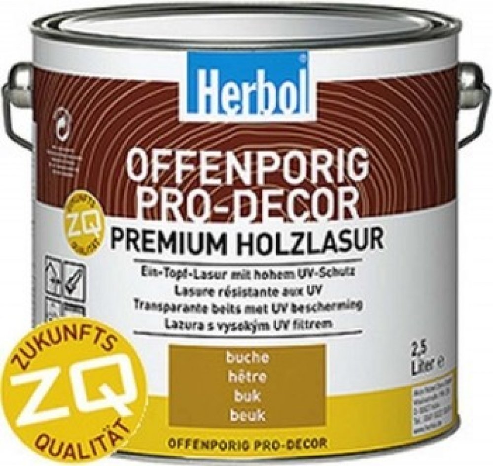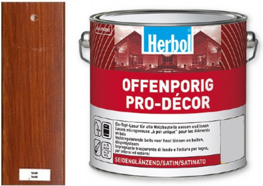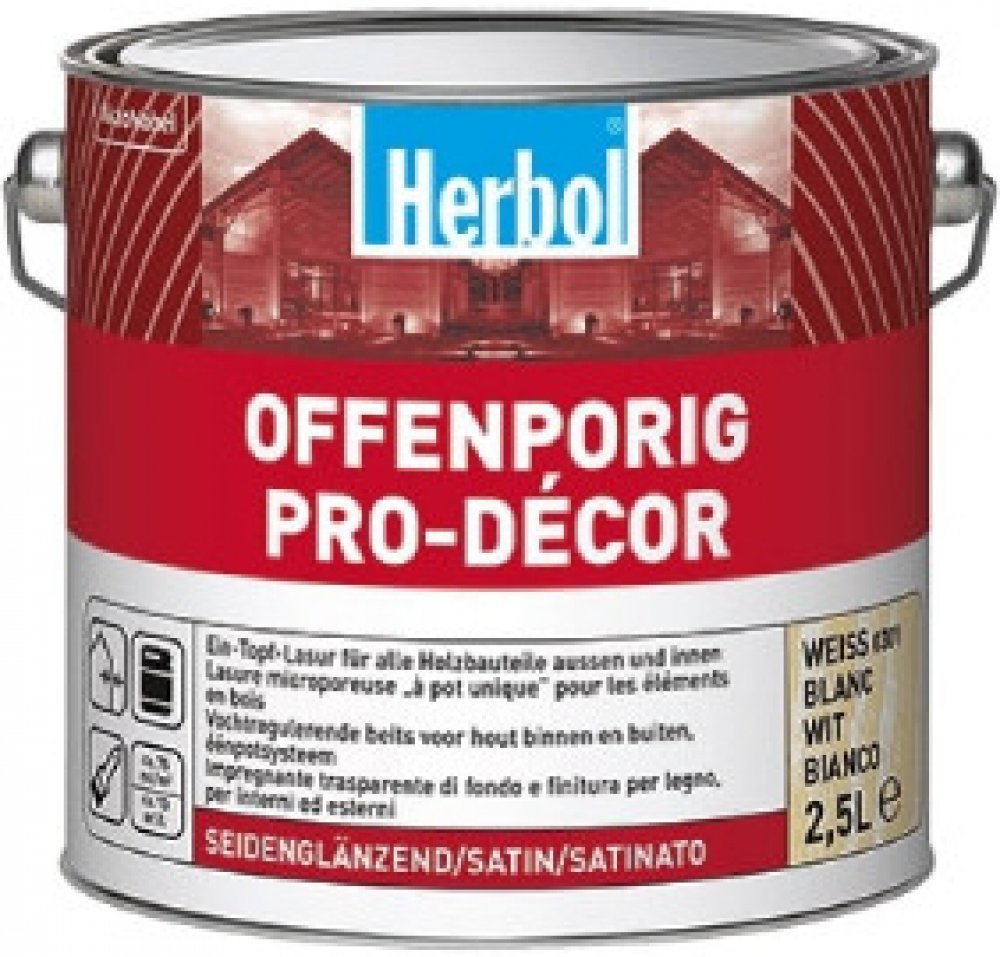 Herbol-Offenporig Pro-Décor je univerzálně použitelná lazura na dřevo ve vnitřním i vnějším prostředí. Je vhodná pro nové i renovační nátěry na všechny objemově stálé i nestálé dřevěné dílce. Je lehce zpracovatelná. Základní nátěr, mezinátěr, i vrchní nátěr se provádí jedním materiálem. Herbol-Offenporig Pro-Décor je vysoce prodyšný a elastický, chrání dřevo dlouhodobě vůči povětrnosti.