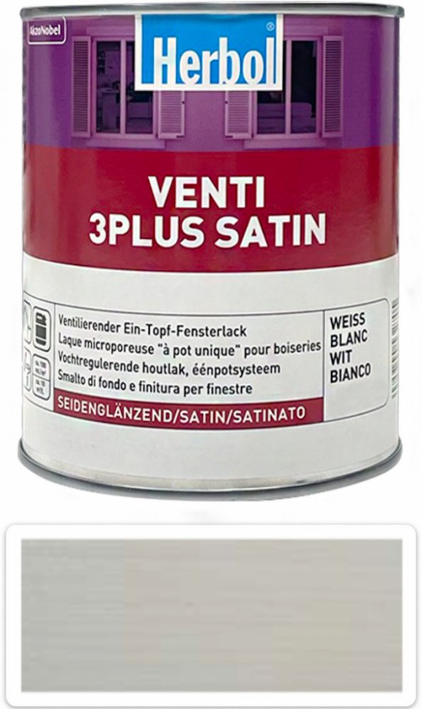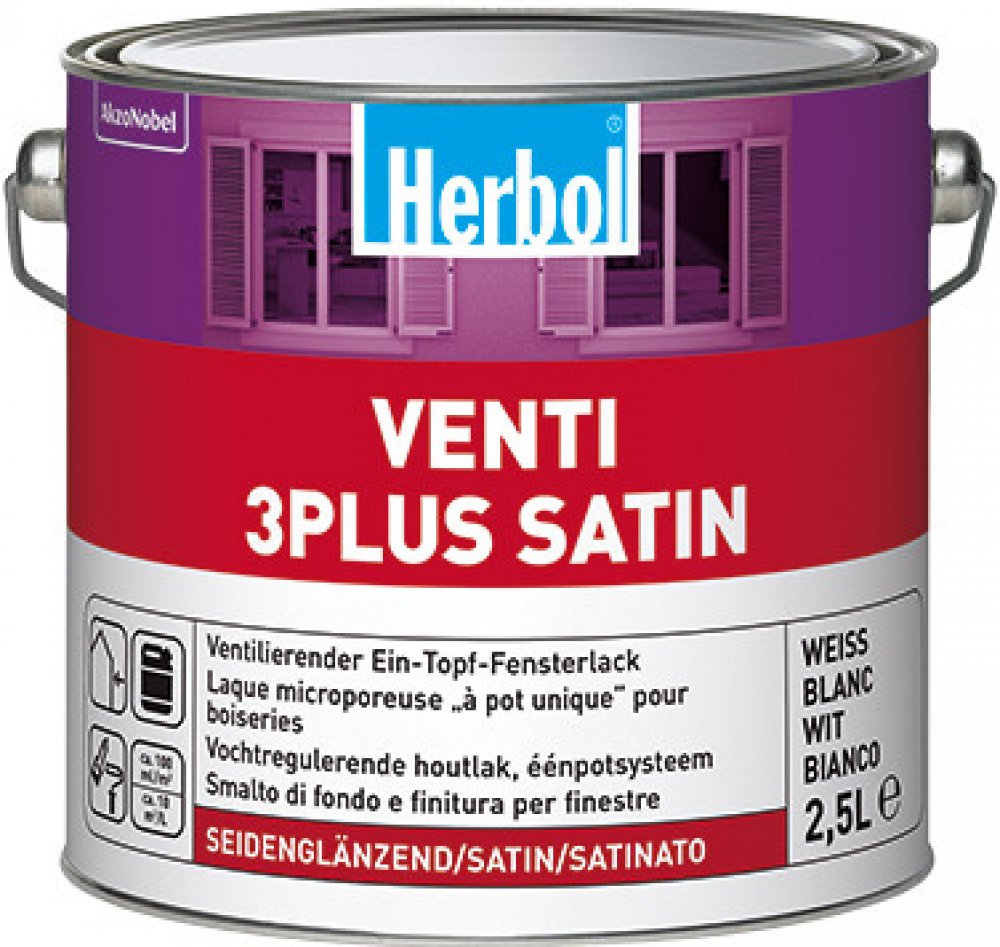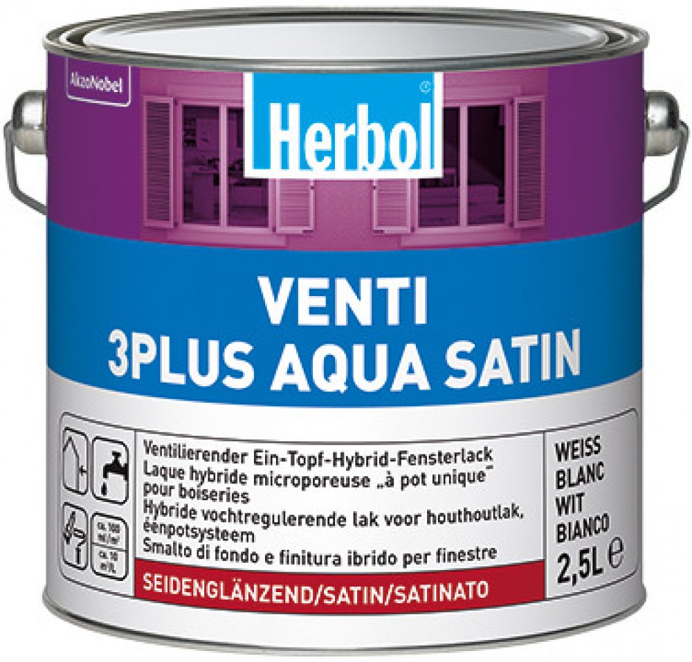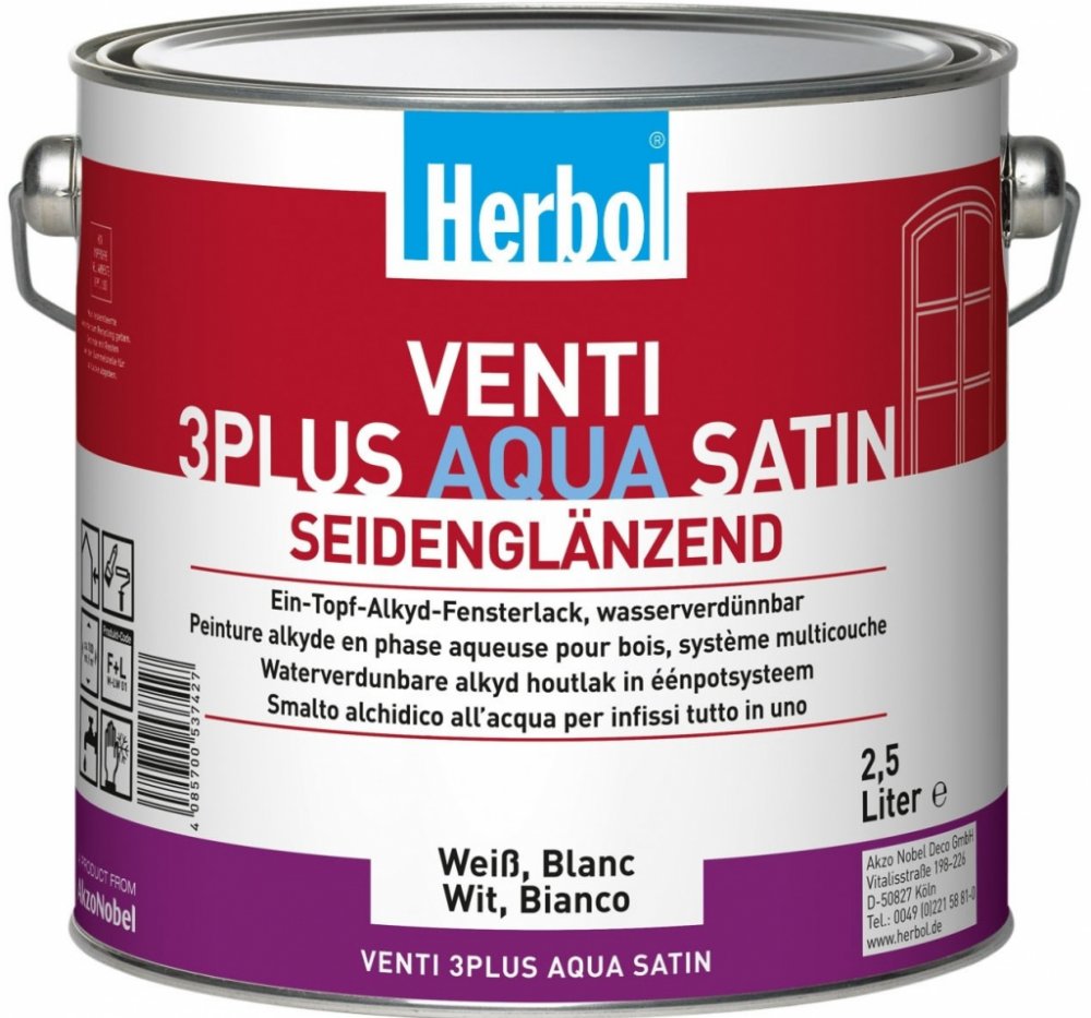 Herbol Venti 3 Plus Satin vhodný na okenní rámy a dveře v exteriéru. Hedvábně lesklý, bezaromátový lak na bázi alkydových pryskyřic. Skvělý pro renovační nátěry. Vysoce odolný proti vlhkosti a povětrnostním vlivům. Venti 3Plus použijte jako základní nátěr, mezinátěr i jako konečný nátěr.