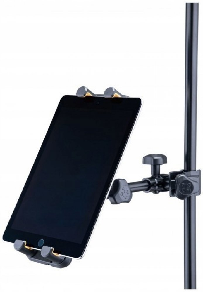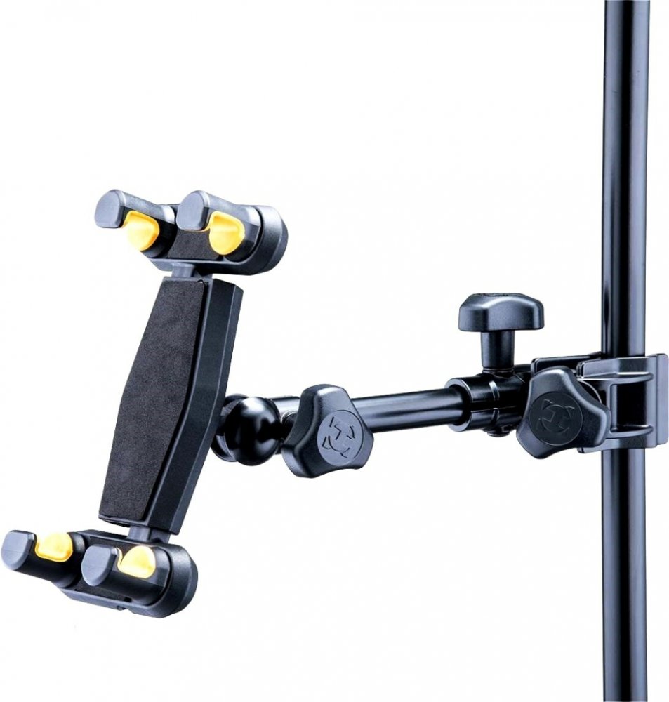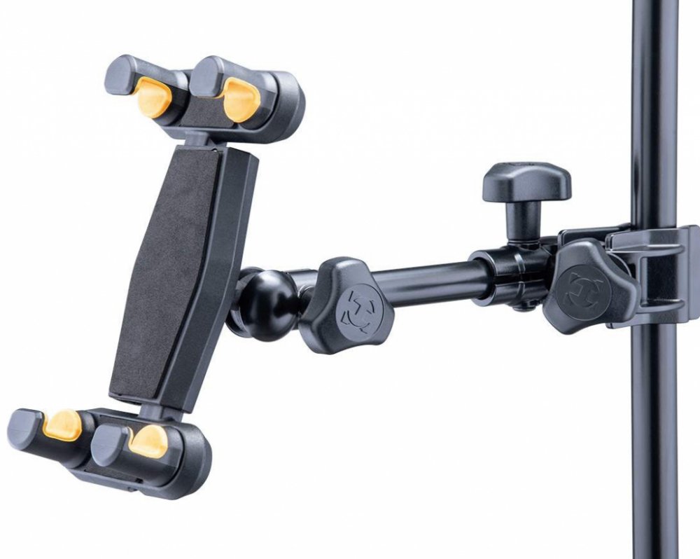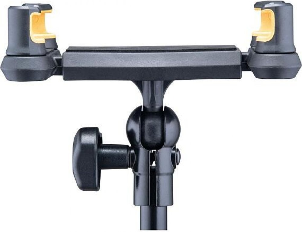 HERCULES DG307B - Univerzální držák na smartphone či tablet. Držák lze ucyhtit k mikrofonnímu, klávesovému a notovému stojanu, nebo ke stolové desce. Díky závitu lze také nastavit i sklon vašeho zařízení. Na držák můžete umístit smartphone či tablet s úhlopříčku od 6,1 do 13 palců. Rozměry: 260 x 95 x 115 mm Hmotnost: 0,57 kg Nosnost: 3 kg