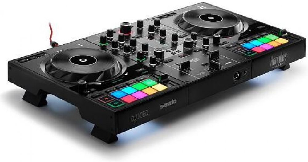 mixážní pult, 16 RGB podsvícených padů s 8 režimy, velké jog wheely o průměru 14 cm, Přehrávání/Pauza, Cue, Shift, Sync, jog wheel s detekcí dotyku, tlačítka Vinyl, Slip, Quantize, Loop In/Loop Out, Serato® DJ Lite a DJUCED® v balení