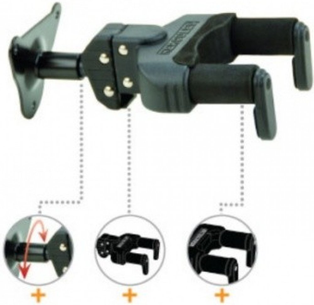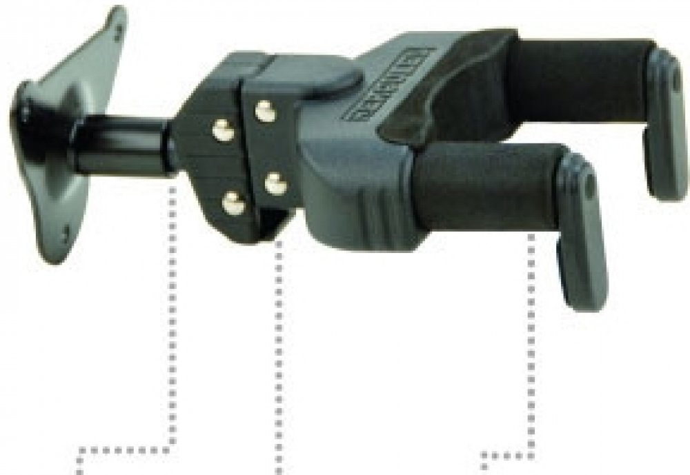 Kytarový věšák Nástěnné věšáky značky Hercules jsou vybaveny systémem AutoGrip, který po vložení nástroj automaticky uzamkne a zajistí mu tak absolutní bezpečí. Při jeho vybírání se pak opět zámek odemkne, takže nástroj máte vždy pohodlně po ruce. Kontaktní místa jsou polstrovaná speciálně vyvinutou pěnou, která zabrání poškrábání nástroje. Hlava věšáku je vertikálně otočná o 30 stupňů doleva nebo doprava. Díky této vlastnosti ho lze použít i na nástroje s netypickou hlavou. Zároveň je součástí balení také sada nástavců, díky kterým můžete do věšáku umístit kromě kytar a baskytar i nástroje s užším krkem, jako například banja či mandolíny. Rozteč vidlice je přibližně 6,5 cm.