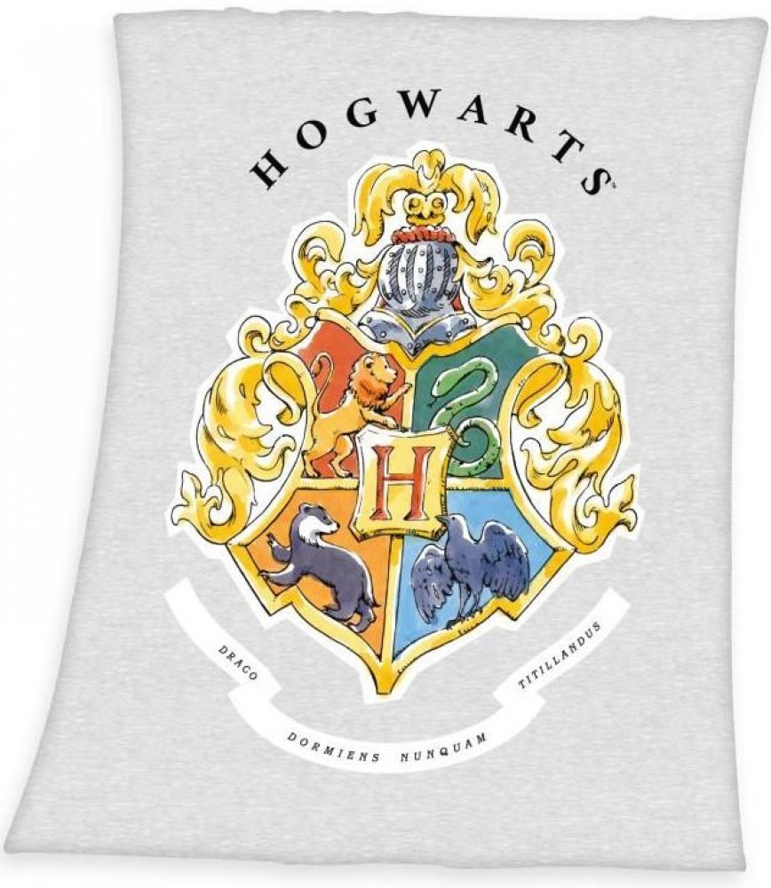Jemná dětská deka, do které se děti rádi zachumlají. Využijí ji po celý rok, třeba večer u pohádky nebo při cestování jako přikrývku do auta anebo na tábor. Fleece deka se znakem školy čar a kouzel z Harryho Pottera je lehoučká, příjemná a hřejivá deka, která u vás doma najde jistě uplatnění. Deka je laděná do šedo žluté barvy . Vypadá dobře i na posteli jako dekorační přehoz.