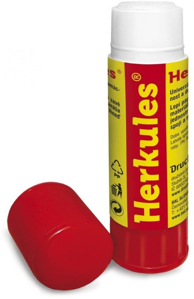 Před vysycháním je pak tyčinka Herkules chráněna nasazovacím uzávěrem. Tyčinka je vhodná k lepení papíru, tkanin, korku a dalších savých materiálů.