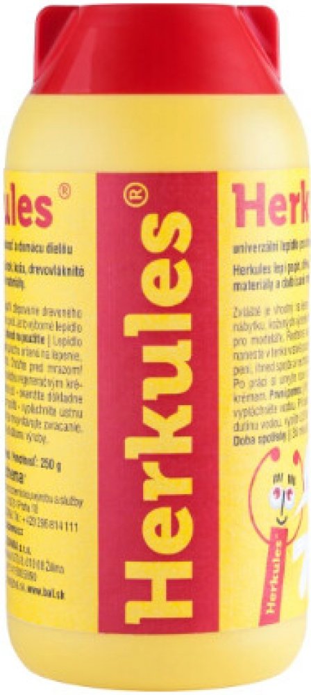 Univerzální disperzní lepidlo pro domácnost, školy, kancelář a domácí dílnu. Herkules lepí papír, dřevo, korek, kůži, dřevovláknité materiály a další savé materiály. Zvláště je vhodný na lepení fotografií, slepování dřevěného nábytku, kožených výstelek obuvi apod.