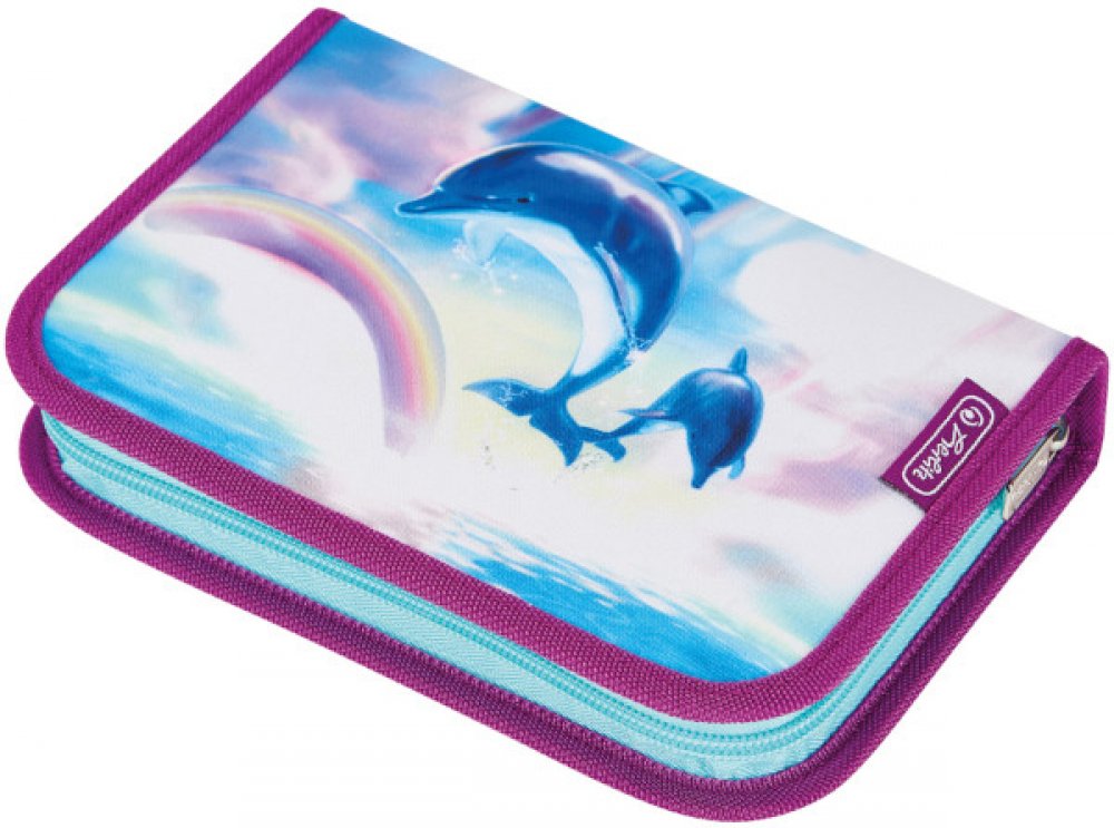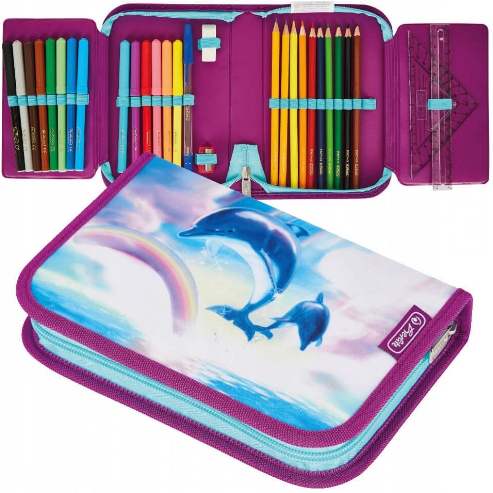 Fotky vnitřku nemusí barevně odpovídat. Tyto fotky slouží pro ilustraci vnitřního vybavení. Zakupte produkt Školní penál Herlitz 1-patrový 2 chlopně vybavený - Delfín z kategorie Aktovky, batohy, tašky přes rameno, příslušenství | Penály, etue | Penály | 1-patrové vybavené od výrobce Herlitz za cenu 269 Kč.