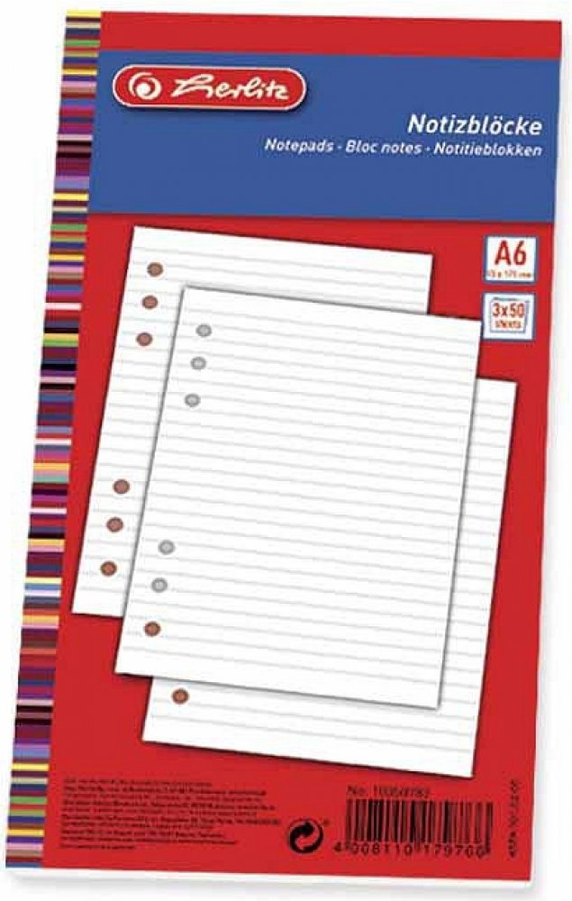 Náplň A6 do diáře Herlitz - Blok 50 listů - 3 ksLinkovaný blok do diářů Herlitz A6 - 3 x 50 listů