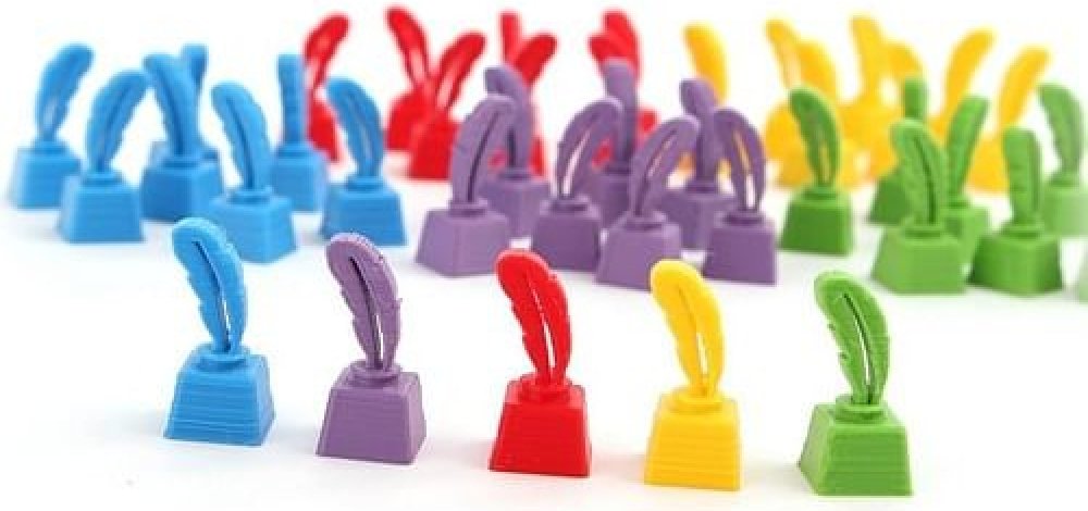 Figurky akce v podobě pera v kalamáři jsou skvělou alternativou k akčním kostičkám deskové hry Na křídlech. Sada obsahuje 8 figurek pro každého hráče. Materiál: barevný bioplast.
