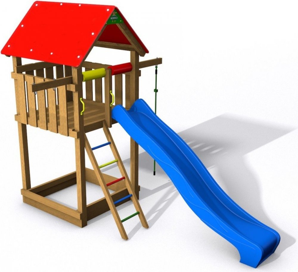 Hřiště je vyrobeno z kvalitních impregnovaných mimostředových profilů, které zajišťují dlouholetou životnost bez známek opotřebení. Střecha je z červené dibondové desky o tloušťce 4 mm, která je odolná proti korozi, má vysokou tuhost, rovný povrch a UV filtr.