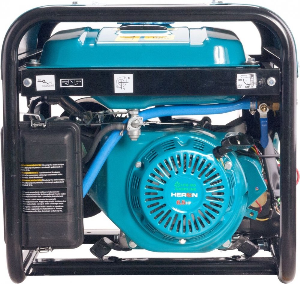 Elektrocentrála HERON LPGG 22 s maximálním výkonem 2800 W, robustní ochrannou konstrukcí a hmotností 45 kg.