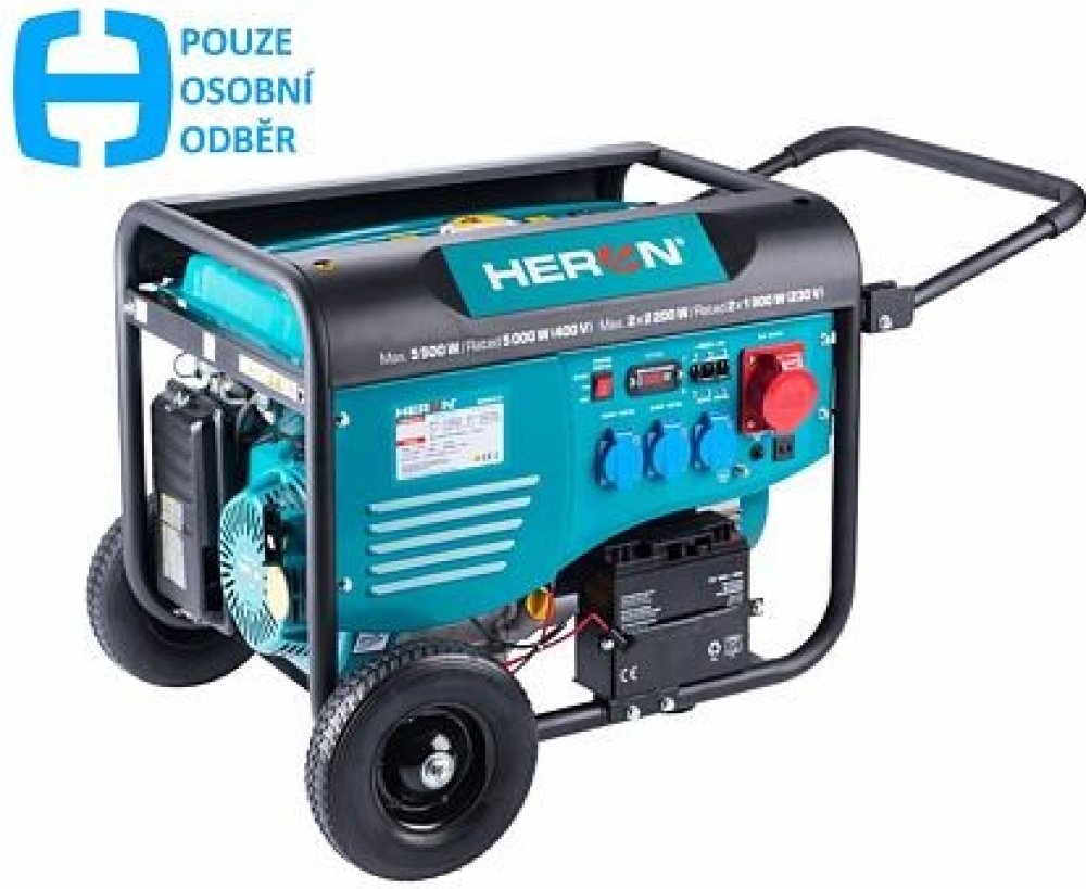 Heron čtyřtaktní benzínové 5500 W 93 kg třífázové elektrické 97 dB(A) černé