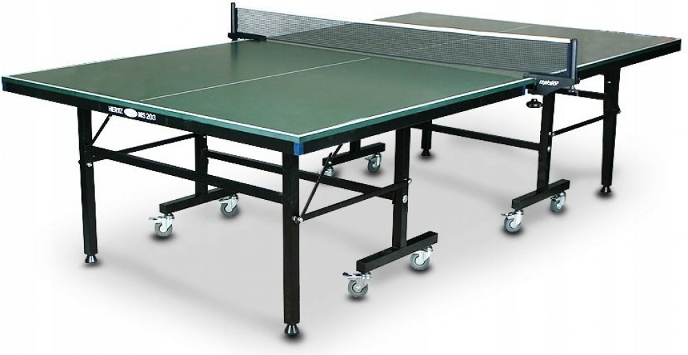 Velmi pevný pingpongový stůl určený pro použití v tělocvičnách nebo v domácnostech. K výrobě byla použita vysoce kvalitní MDF deska a celek je umístěn na ocelové konstrukci vyrobené z odolnějších 40 mm ocelových profilů. I přes své rozměry je stůl velmi snadno skladovatelný díky možnosti skládání a přepravování na kolečkách.