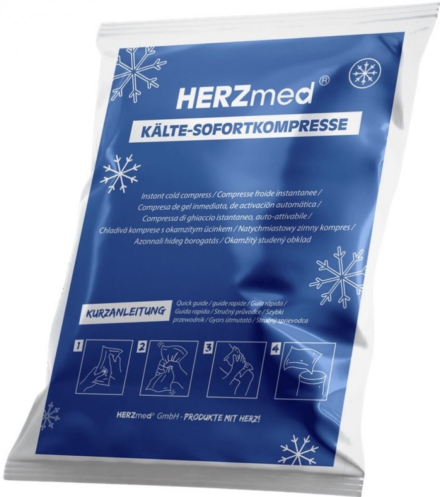 Cold Compress HERZmed – instantní chladicí sáček poskytuje rychlou a účinnou úlevu při akutních poraněních, kde je žádoucí okamžité ochlazení postižené oblasti. Jeho účinek napomáhá zmírnit bolest, zpomalit otok a zklidnit podrážděnou pokožku.