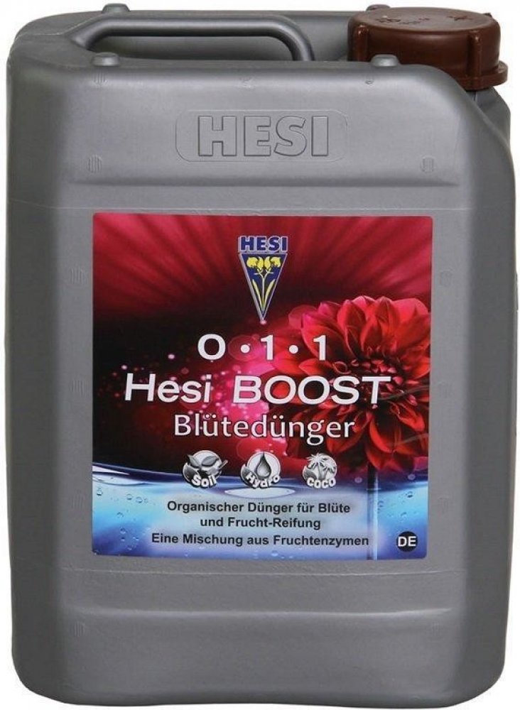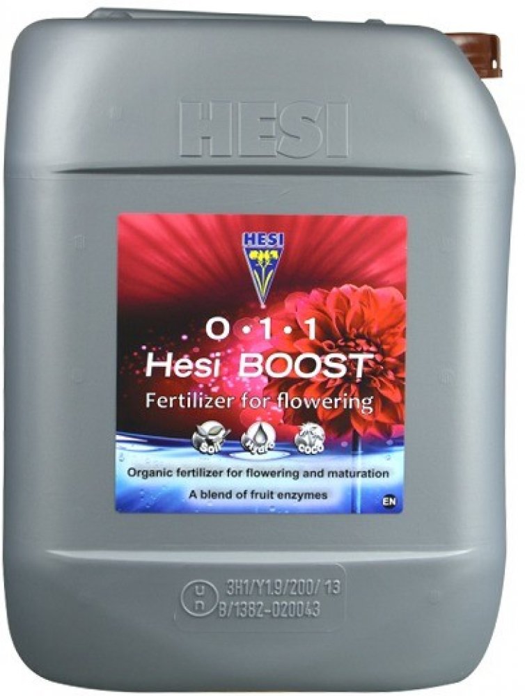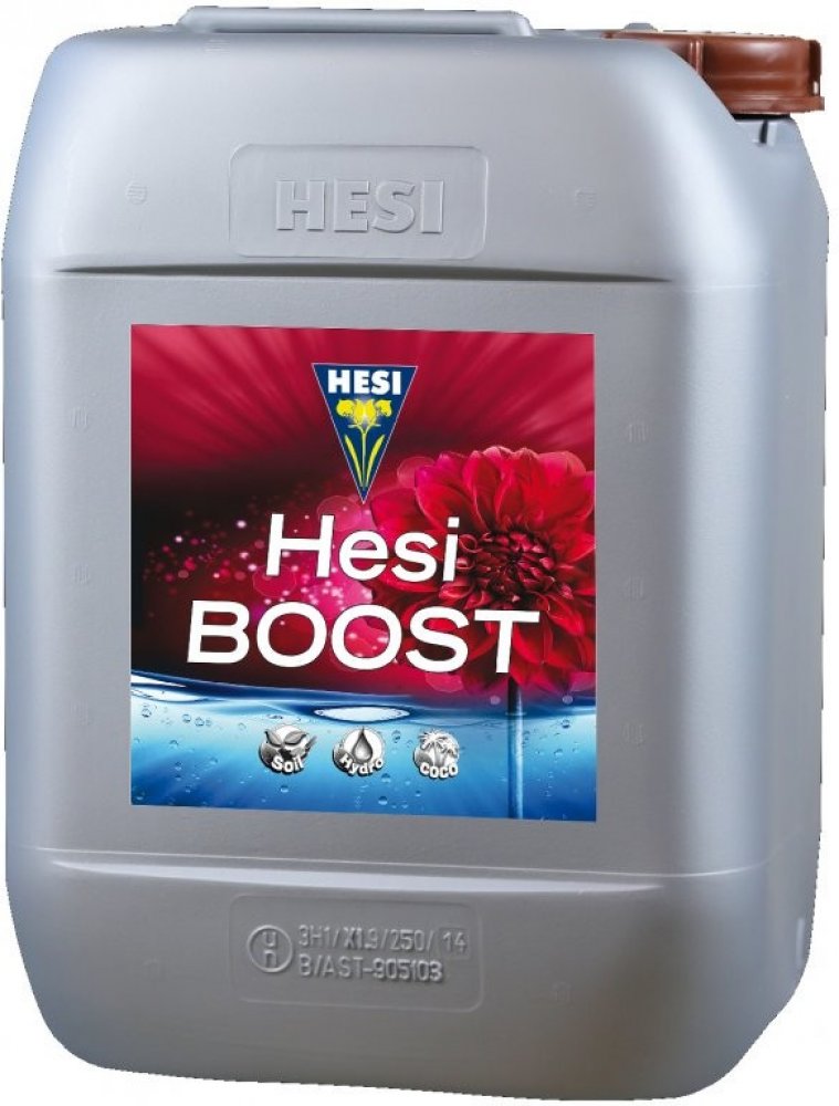 Hesi Boost je směs koncentrovaných ovocných enzymů. Obsahuje 1% (z každé složky) fosforu (P205) a draslíku (K2O), stejně jako i minerály vápník, hořčík, železo, zinek, měď, molybden a selen, a to vše přírodního původu. Rovněž obsahuje vitamíny B-komplex (B1, B3, B6) stejně jako cukr, ovocné enzymy, jako např. galactol a rostlinné cukry (např. melitosa a kyselina alginátová).