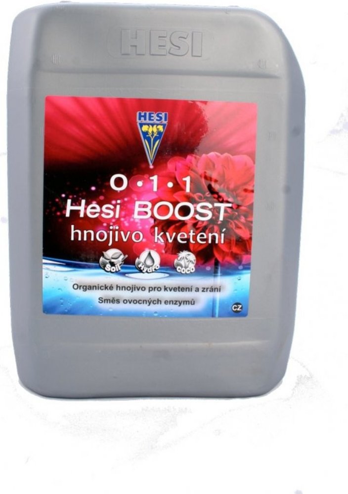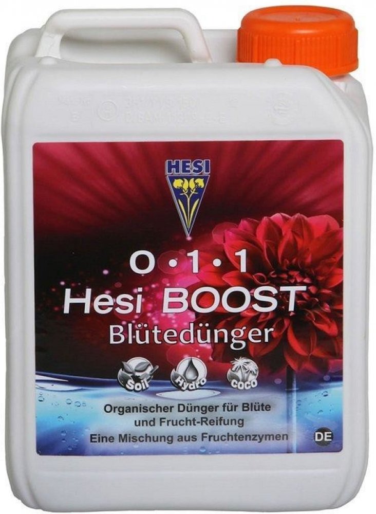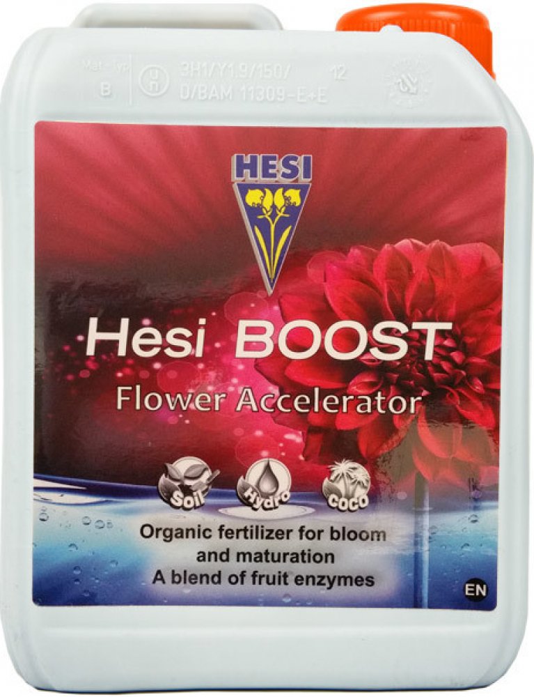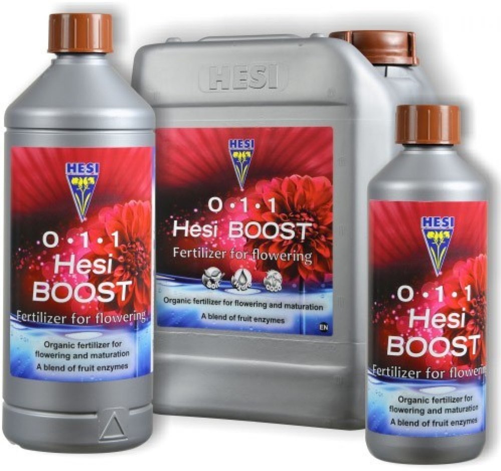 Hesi Boost je směs koncentrovaných ovocných enzymů. Obsahuje 1% (z každé složky) fosforu (P205) a draslíku (K2O), stejně jako i minerály vápník, hořčík, železo, zinek, měď, molybden a selen, a to vše přírodního původu. Rovněž obsahuje vitamíny B-komplex (B1, B3, B6) stejně jako cukr, ovocné enzymy, jako např. galactol a rostlinné cukry (např. melitosa a kyselina alginátová).