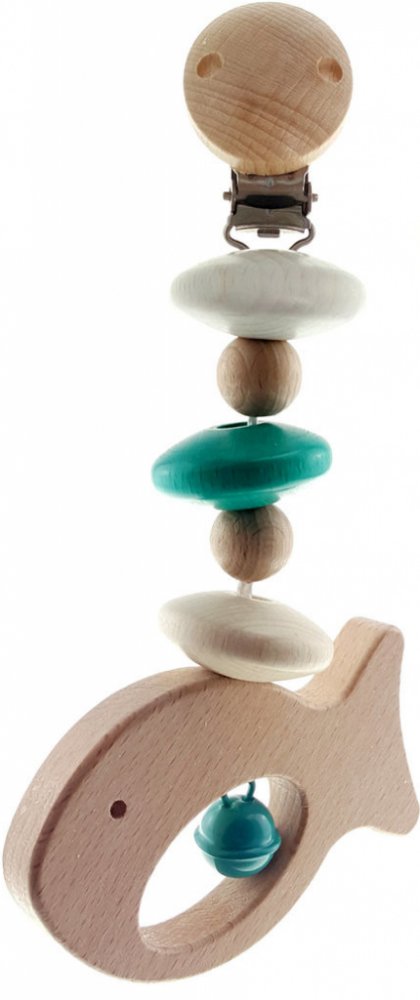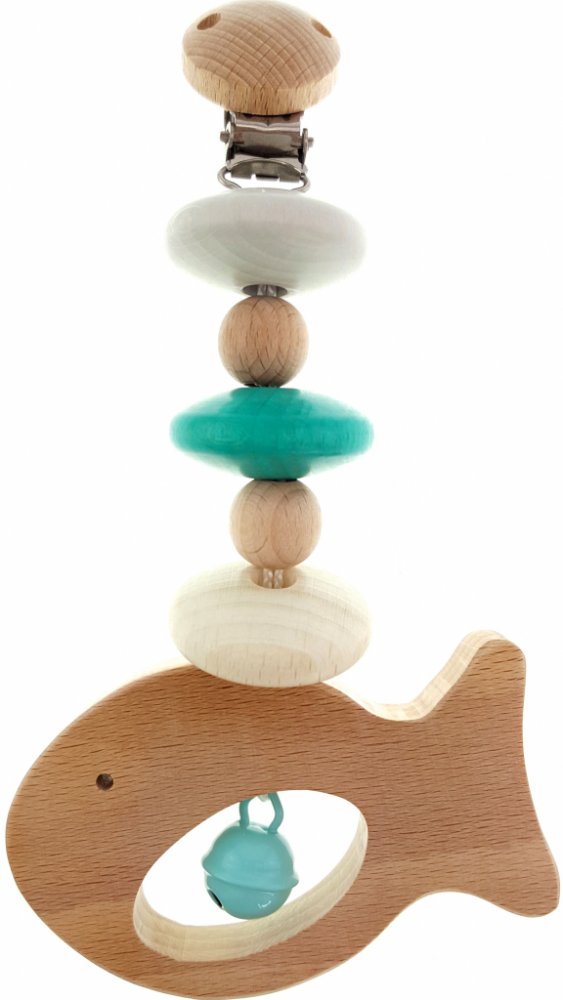 Hess Klips na kočárek rybička tyrkysový, Rozměr: 15 cm Věk: 0+ Materiál: dřevo, kov 100% Vyrobeno v Německu Vysoce kvalitní dřevěná hračka stimuluje představivost a zaujme pastelovými barvami. Hravou formou trénuje jemnou motoriku dítěte. Chcete-li si ji užít po dlouhou dobu, vyvarujte se nadměrného působení vody, čistěte hračku pouze vlhkým hadříkem. Chrastítko nevyvařujte, nedávejte do sterilizá...