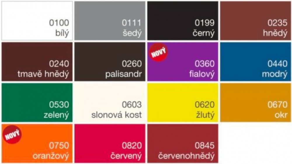 - bílý + 14 barevných odstínů