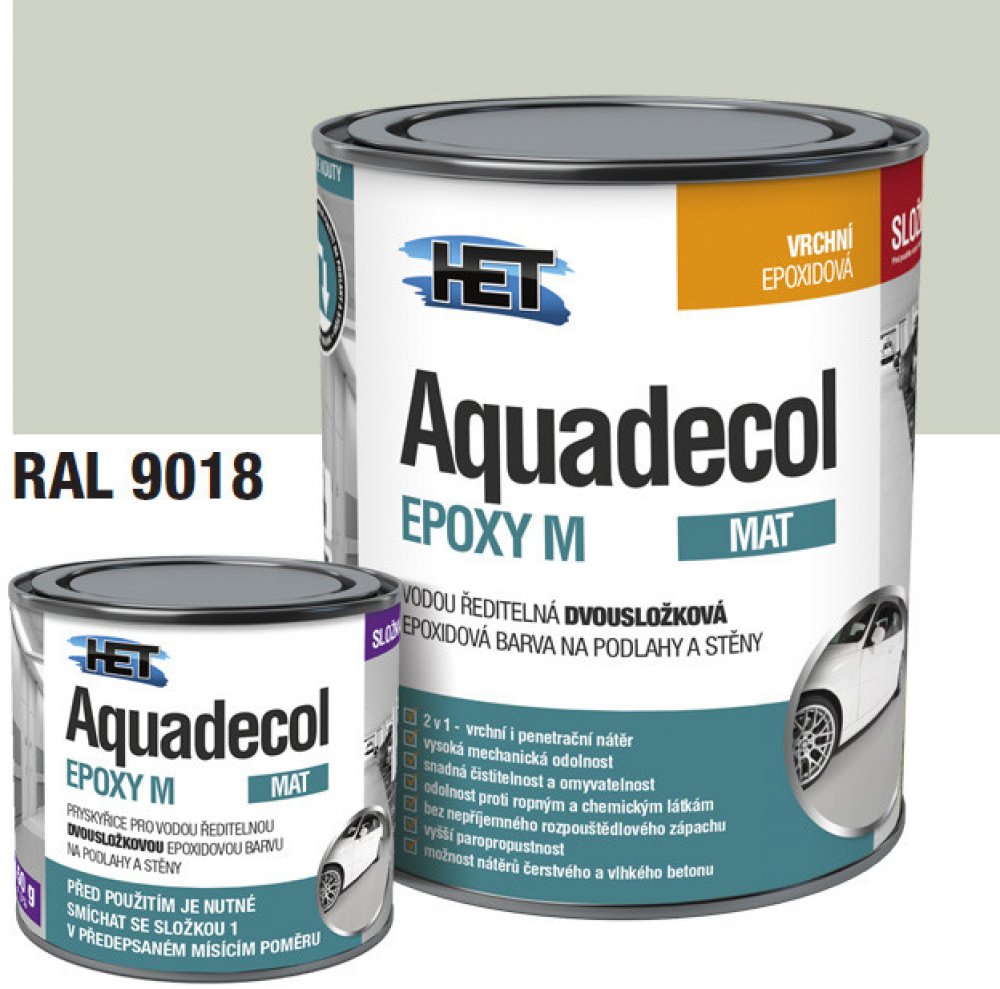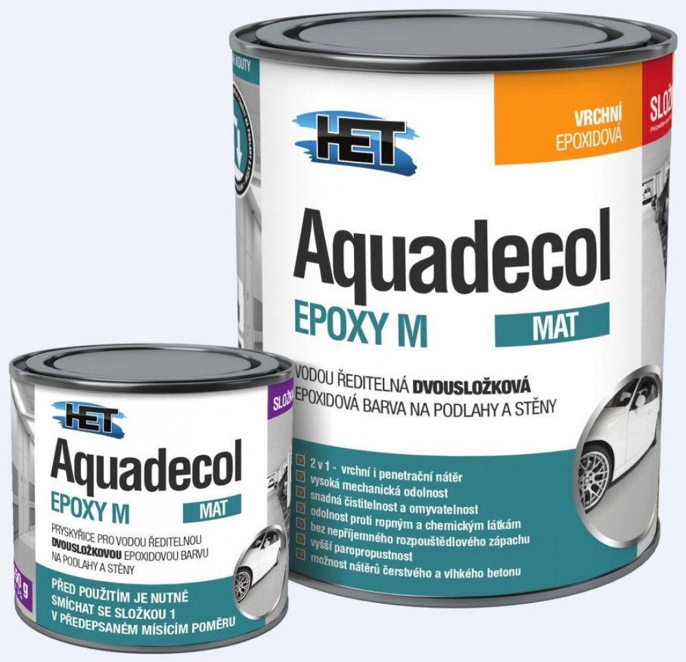 VODOU ŘEDITELNÁ DVOUSLOŽKOVÁ EPOXIDOVÁ BARVA NA PODLAHY A STĚNY - používá se pro nátěry zátěžových podlah a stěn v garážích, skladech, dílnách, sklepních prostorech, kuchyních, koupelnách, nemocničních a potravinářských provozech apod.
