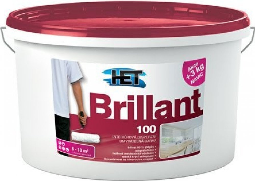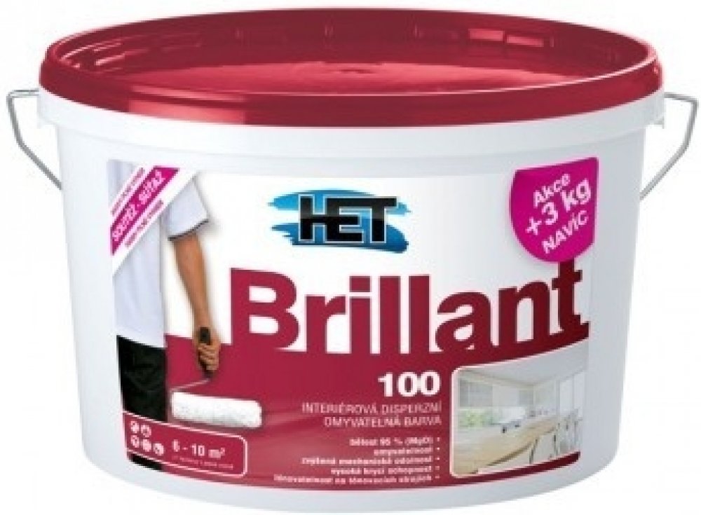 Podrobnosti o produktu 020-075030 15 plus 3 kg HET Brillant 100 je interiérová disperzní omyvatelná malířská barva určená pro široké spektrum vnitřních stěn a stropů, která poskytuje vysokou bělost, kryvost a odolnost nátěru za přijatelnou cenu.