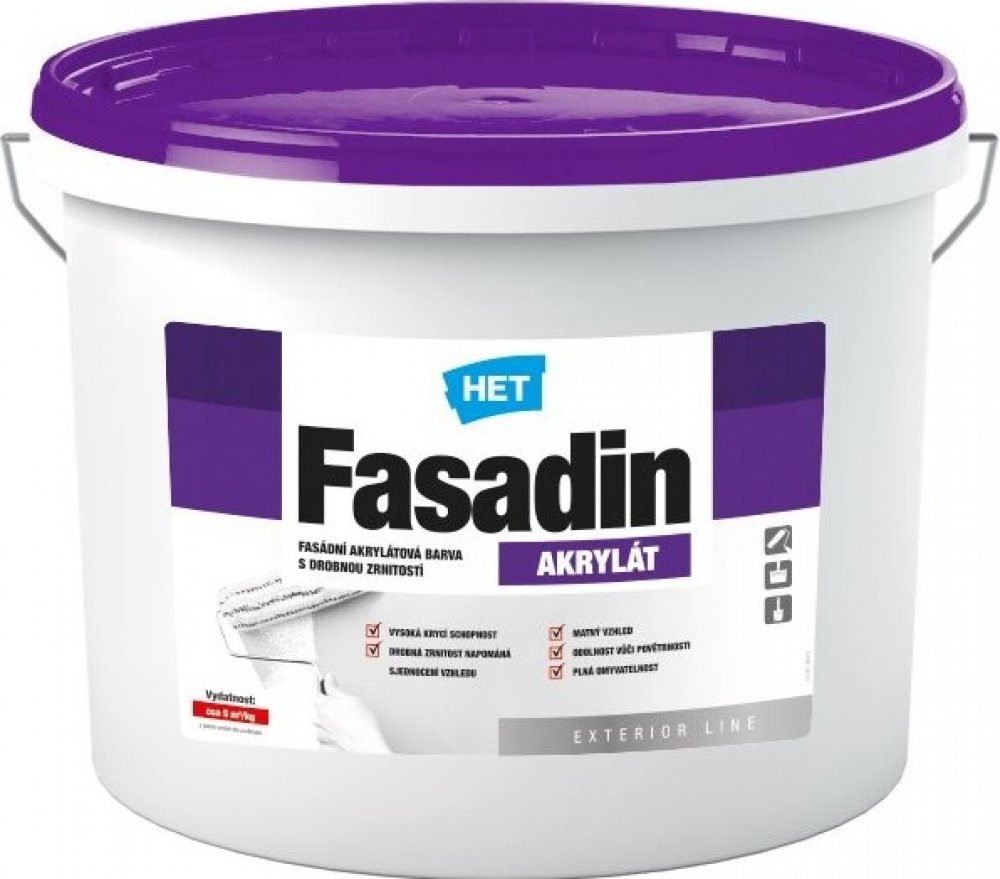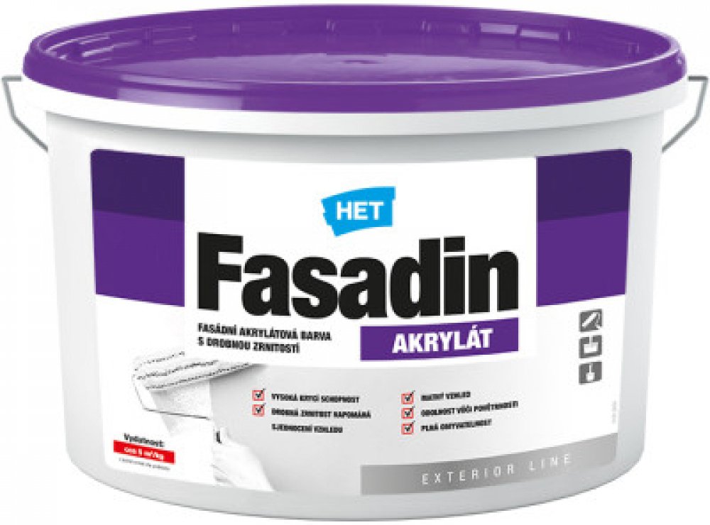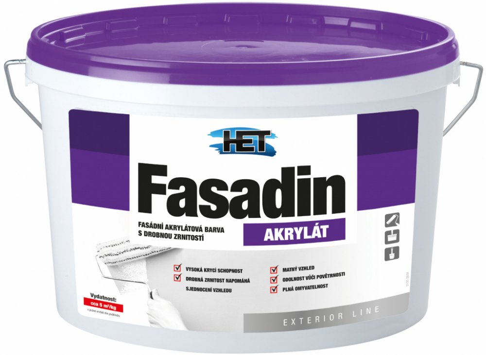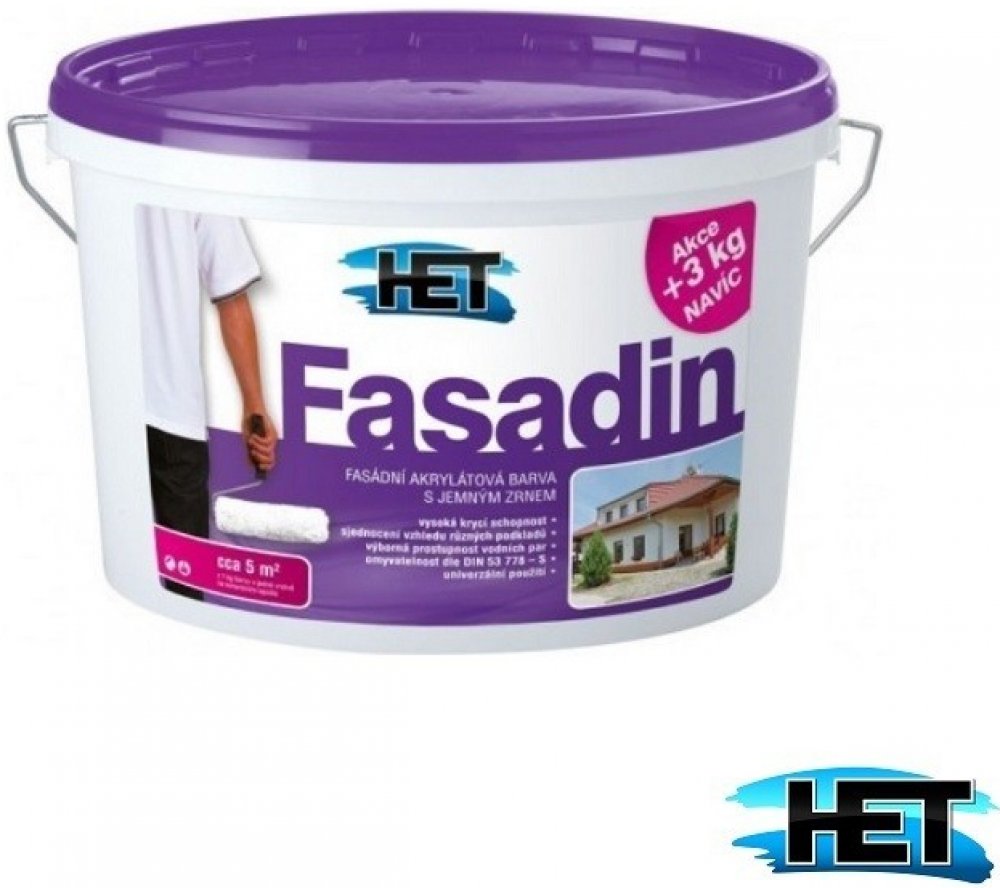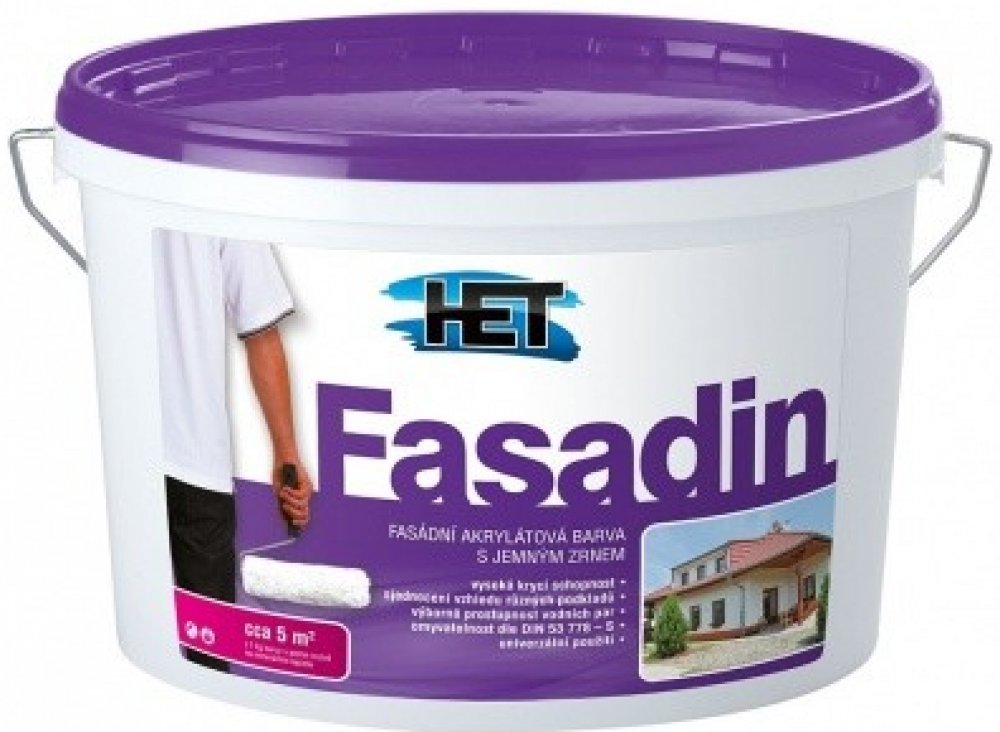 HET Fasadin je vhodná pro nátěry jak na nových, tak na starých minerálních omítkách. Lze ji také použít pro obnovovací nátěry akrylátových fasádních barev nebo pro sjednocovací nátěry kontaktních zateplovacích systémů s povrchovou úpravou z akrylátové tenkovrstvé omítky. Je důležité, aby nátěrový film nebyl neustále v kontaktu s vodou nebo nadměrnou vlhkostí.