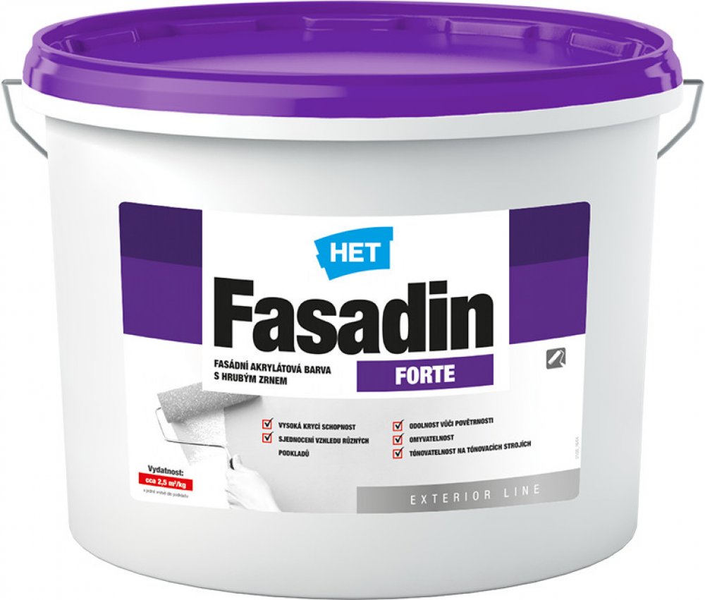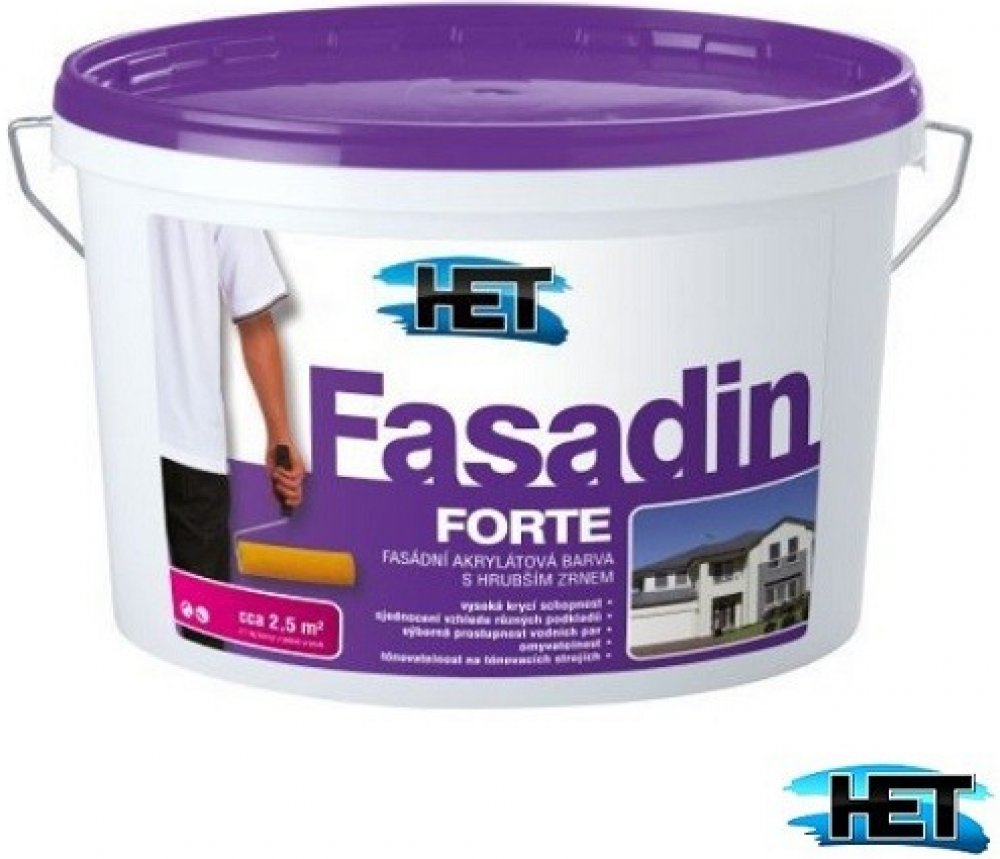 - bílý, tónování je možno provádět tónovacími barvami HETCOLOR (pouze odstíny vhodnými do exteriéru max. do poměru 1:25 dílům barvy) případně pomocí tónovacích strojů kolorovacích systémech HET do pastelových odstínů