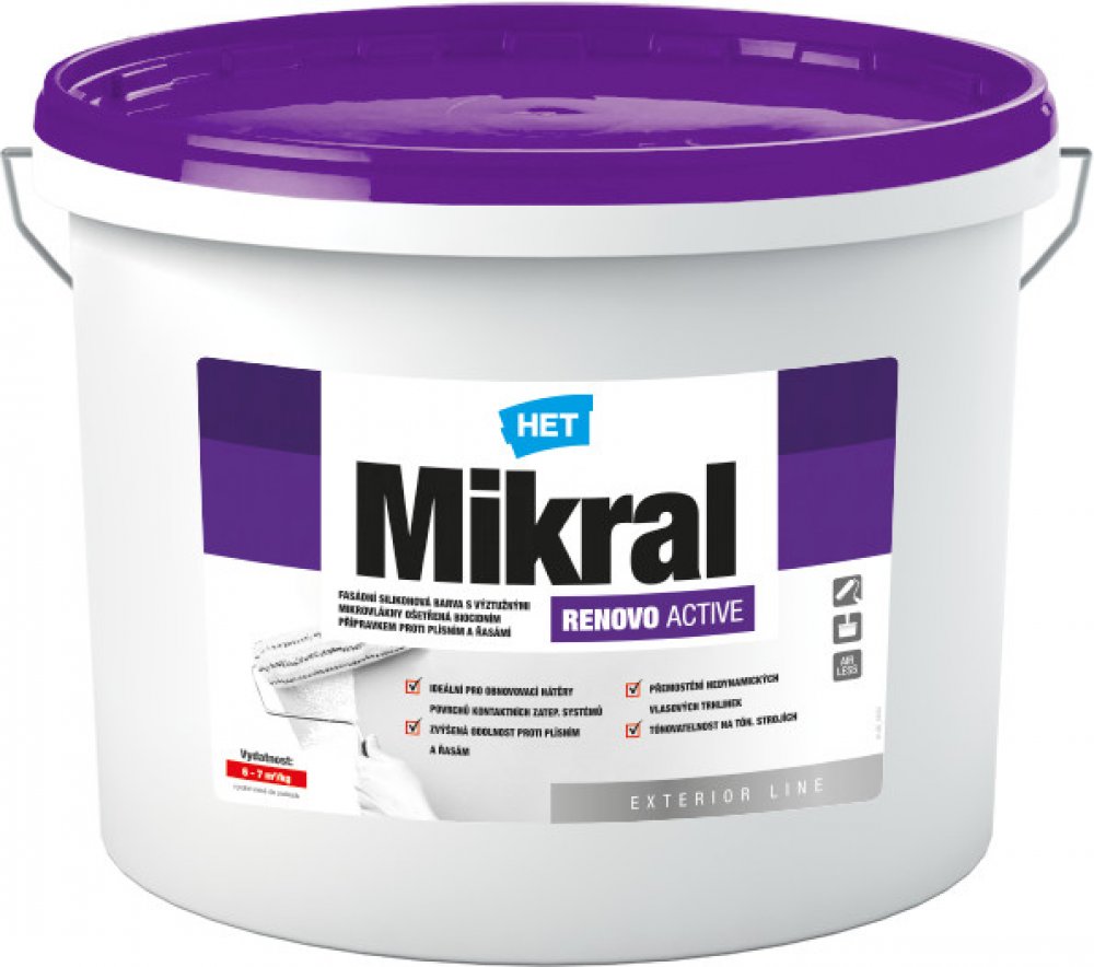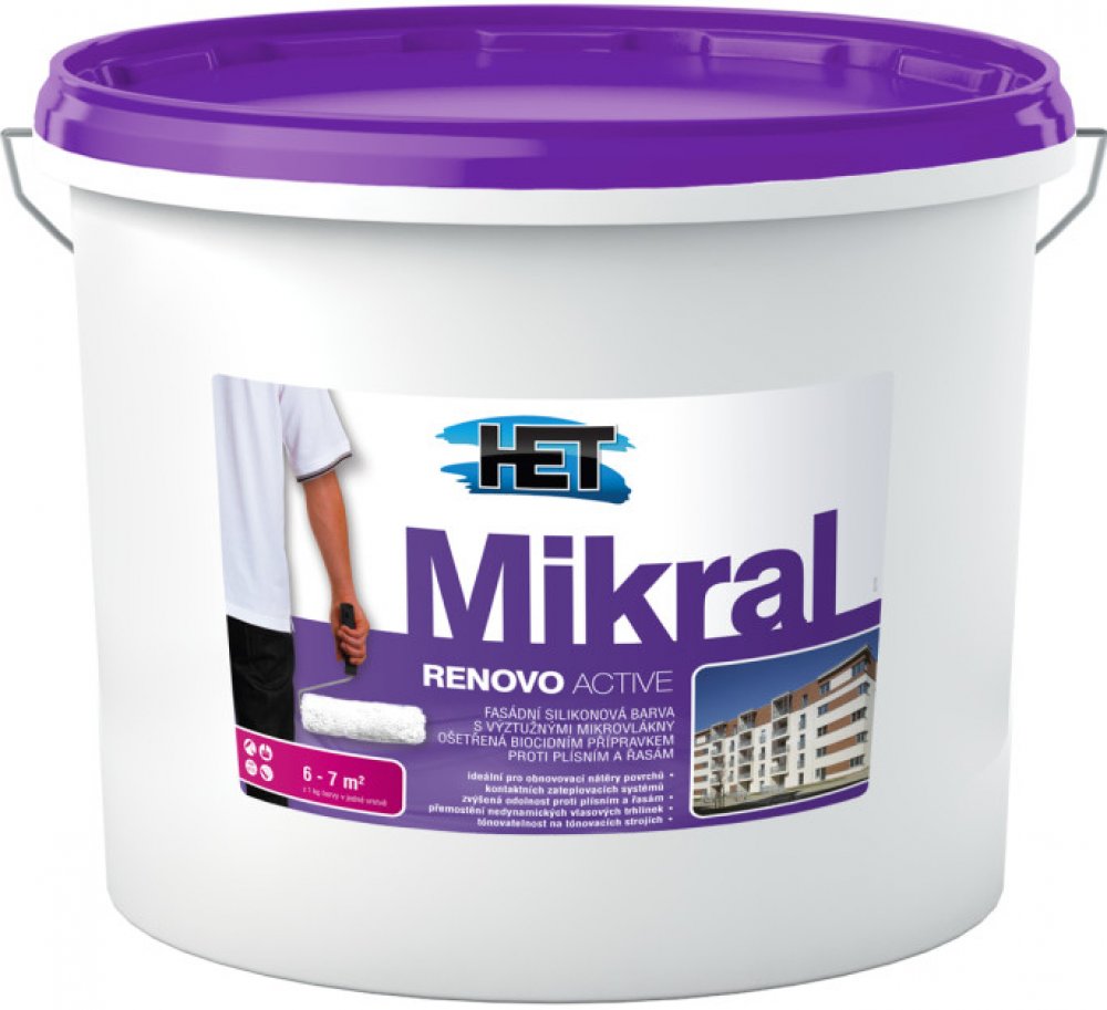 HET MIKRAL RENOVO ACTIVE fasádní silikonová barva bílá 12 kg