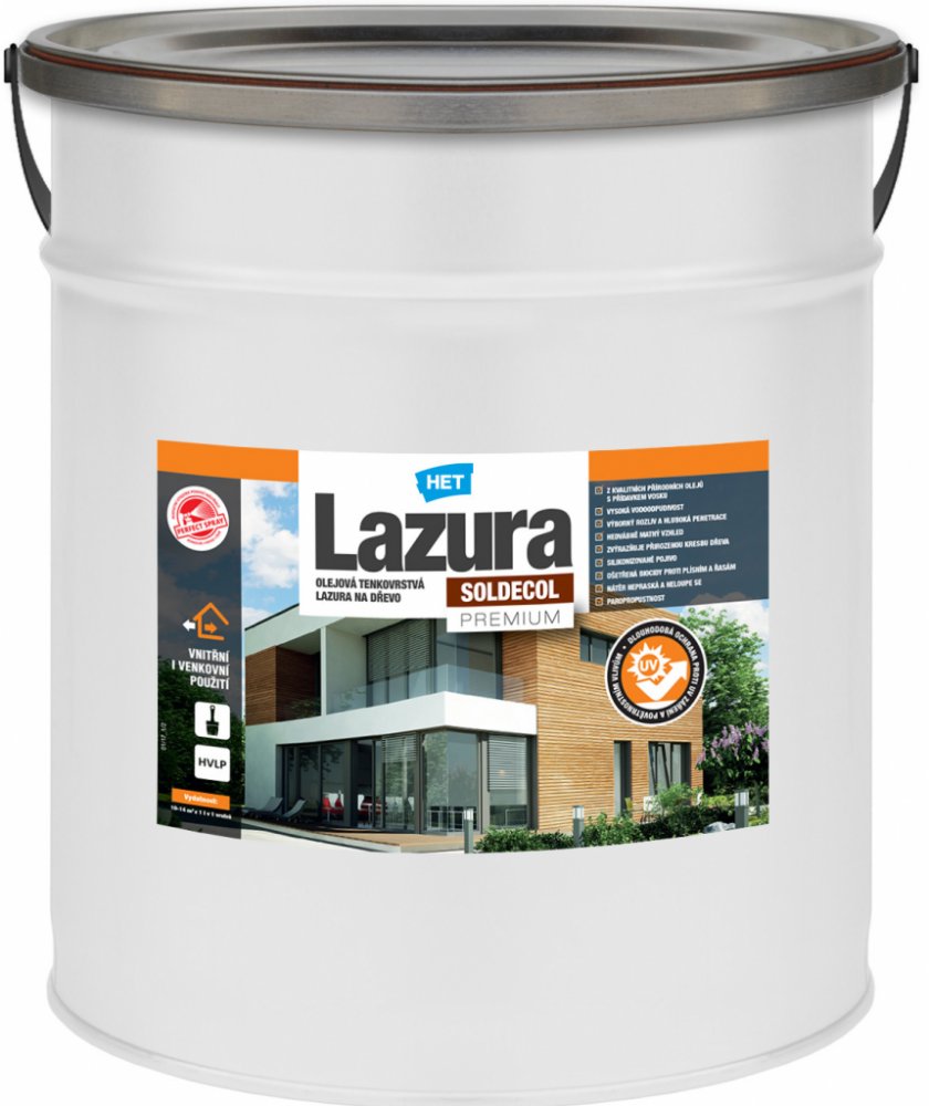Rozpouštědlová olejová lazura PREMIOVÉ kvality pro ochranné a dekorativní nátěry dřevěných povrchů. Lazura je ošetřená účinnými fungicidními a algicidními přípravky a její nátěrový film tak lépe odolává houbám a řasám. Mezi hlavní přednosti dále patří silikonizované pojivo a vysoký obsah velmi kvalitních přírodních olejů a vosků, čímž je dosaženo výborné vodoodpudivosti nátěru a dokonalé ochrany dřeva. Nátěry olejovou lazurou nepraskají a neloupou se, snadno se obnovují a umožňují dřevu „dýchat“. Vynikají jednoduchou aplikací, nízkým odstřikem, perfektním rozlivem a hlubokou penetrací do dřeva. Speciální stálobarevné pigmenty spolu s oleji a voskem přirozeně zvýrazňují strukturu a kresbu dřeva a v kombinaci s kvalitní UV-ochranou vytváří atraktivní hedvábně matný povrch s dlouhodobou odolností povětrnostním vlivům a UV záření.