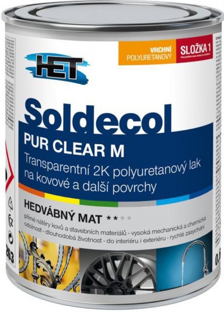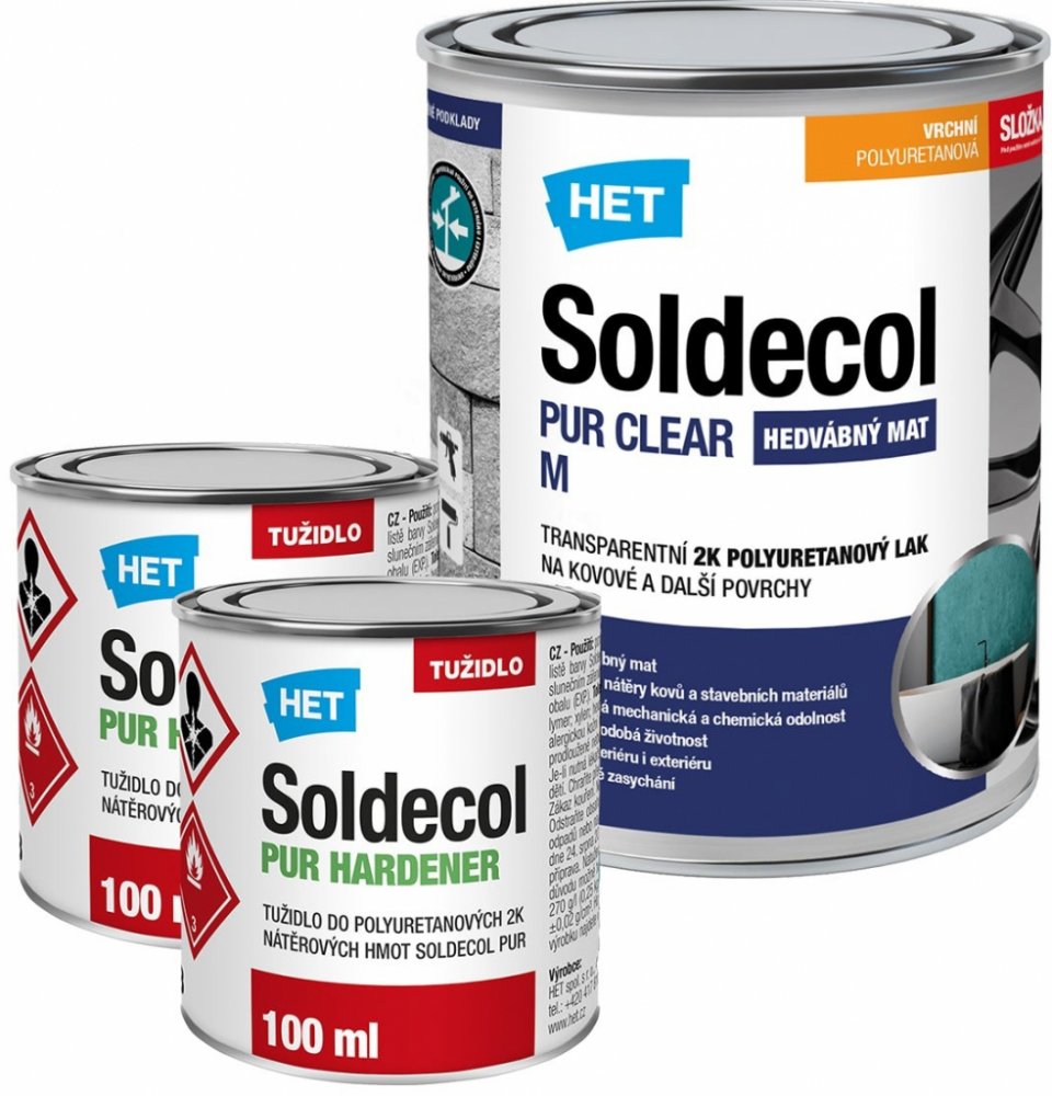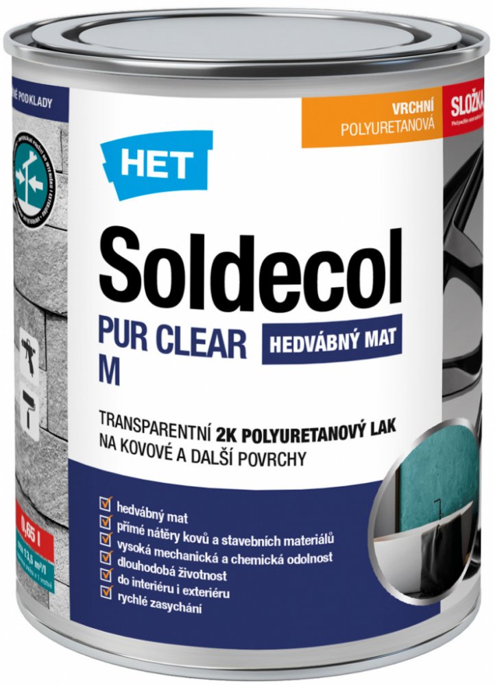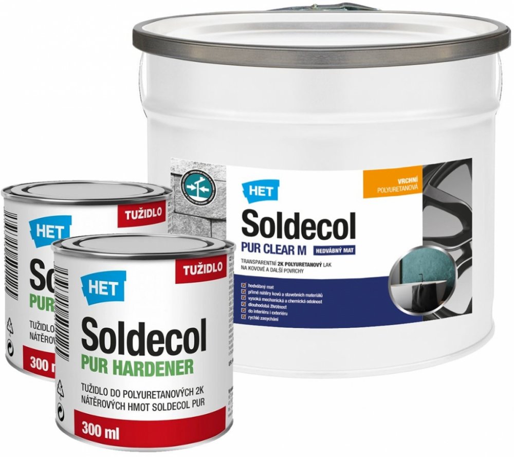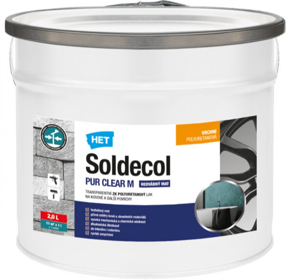- dvousložkový lak primárně určený pro ochranné či dekorativní nátěry železných a neželezných kovů (pozink, měď, hliník, nerez apod.) ve vnitřním i venkovním prostředí. Pro přímé nátěry kovů bez koroze nebo v kombinaci s polyuretanovými výrobky z řad Soldecol PUR