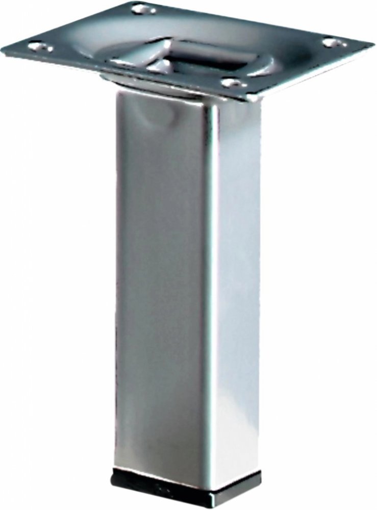 Hranatá nábytková noha 25 x 25 mm se svařovanou montážní deskou, zakončená plastovou koncovkou se závitem M10 pro vyrovnávací šrouby. Maximální zatížení této nábytkové nohy je 50 kg (snížené na 10 kg v případě použití podlahových, vyrovnávacích šroubů).