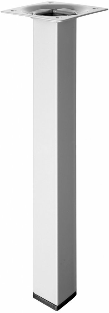 Hranatá nábytková noha 25 x 25 mm se svařovanou montážní deskou, zakončená plastovou koncovkou se závitem M10 pro vyrovnávací šrouby. Maximální zatížení této nábytkové nohy je 50 kg (snížené na 10 kg v případě použití podlahových, vyrovnávacích šroubů).