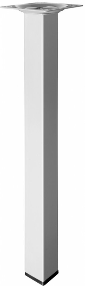 Hranatá nábytková noha 25 x 25 mm se svařovanou montážní deskou, zakončená plastovou koncovkou se závitem M10 pro vyrovnávací šrouby. Maximální zatížení této nábytkové nohy je 50 kg (snížené na 10 kg v případě použití podlahových, vyrovnávacích šroubů).