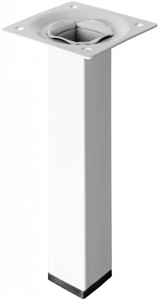 Hettich jednoduchá a stabilní noha stolu s kluznou částí, závitem M10 a přivařenou montážní destičkou. Je vyrobena z oceli bílé barvy. Maximální nosnost nohy je 50 kg. Při použití nastavitelných šroubů nebo koleček je maximální nosnost nohy pouze 10 kg. Je určena k přišroubování. Montážní materiál není součástí balení.
