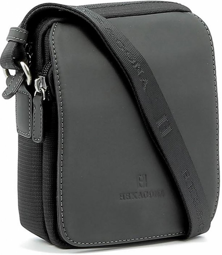 Z přední strany je taška tvořena prošívanou koženou klopou s logem značky Hexagona, pod níž se nachází 2 kapsy, klopa se zapíná na magnet. Tělo tašky je tvořené z odolného nylonu, uvnitř naleznete hlavní kapsu uzavíratelnou na zip a využít můžete i kapsičku ze zadní strany, uzavíratelnou na magnet. Taška je určena pro nošení přes rameno a to díky nastavitelnému nylonovému popruhu.