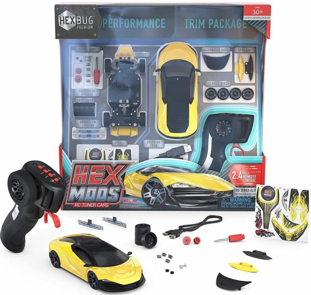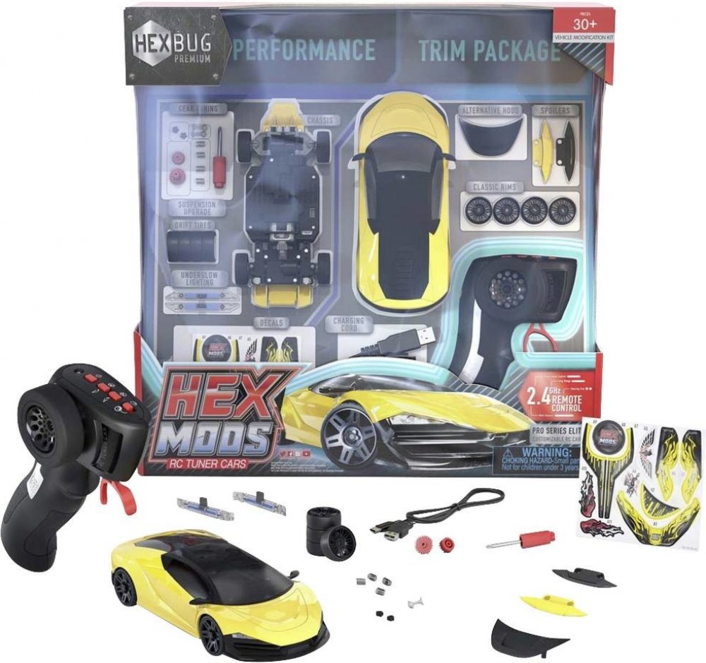 HEXMODS jsou sestavitelné RC modely aut s velkými možnostmi vlastního tuningu. Stavebnice HEXMODS Pro Series obsahuje podvozek auta schopný dosahovat rychlosti až 21 kilometrů za hodinu!