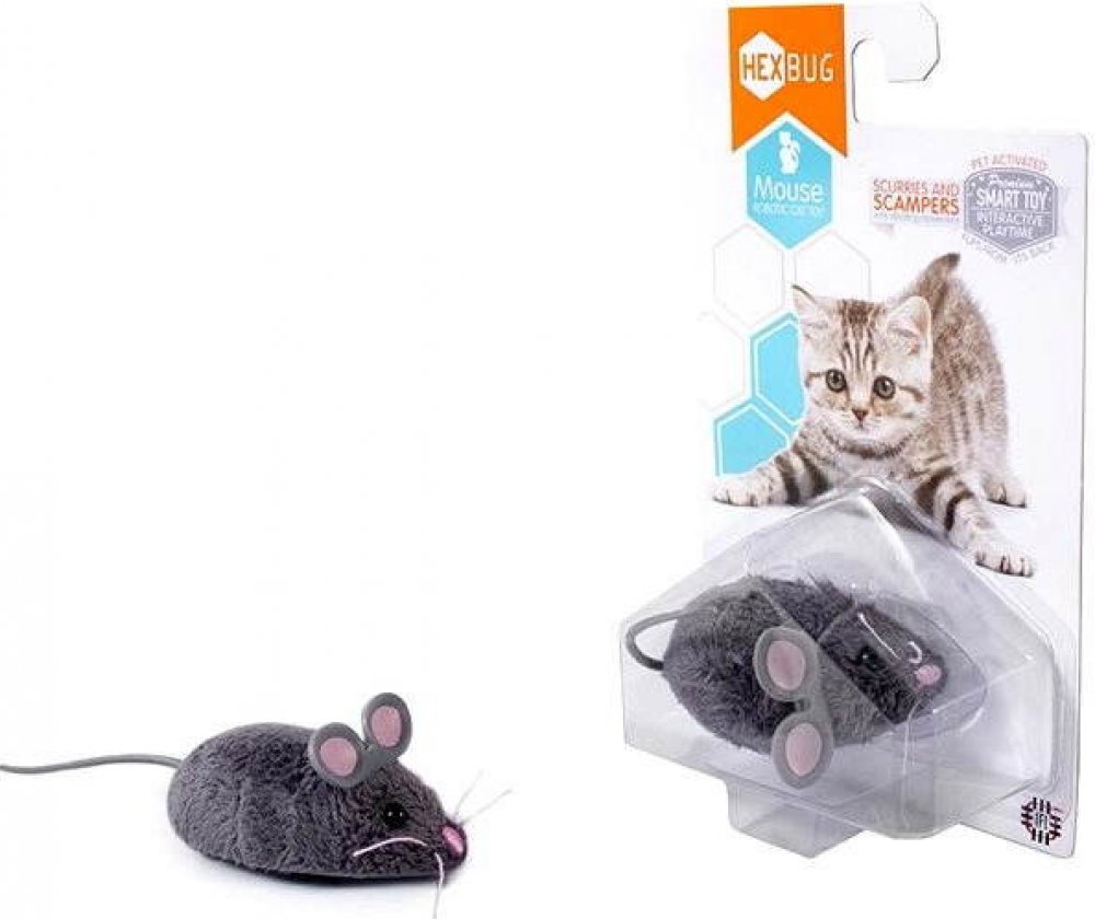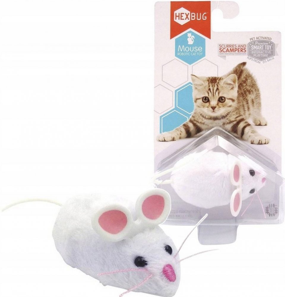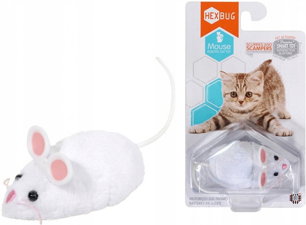 Robotická hračka pro Vašeho domácího mazlíčka! Myška jako živá. Interativní robomyš má dva režimy činnosti: režim „TLAPKA“, při kterém myš pokračuje v pohybu po doteku kočky, např. tlapkou a hrací režim „LOV“, kdy se myš náhodně rozjíždí a zastavuje.