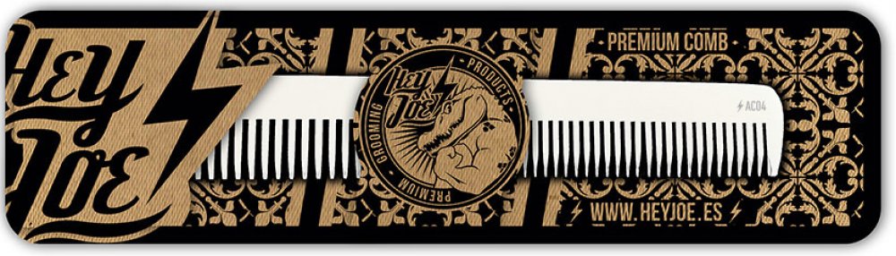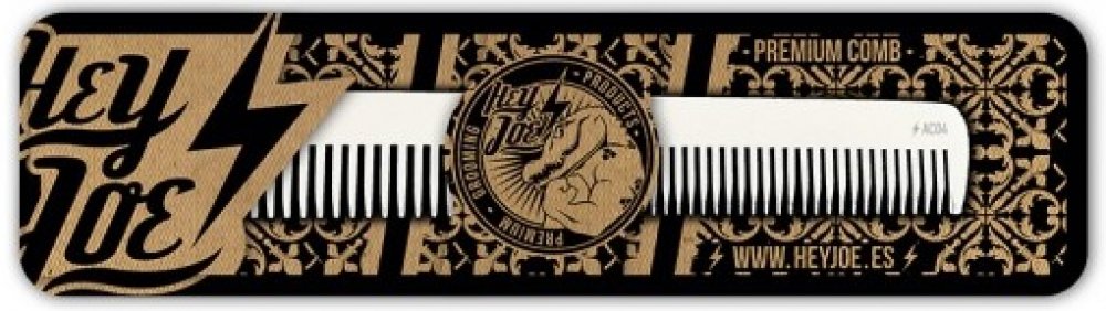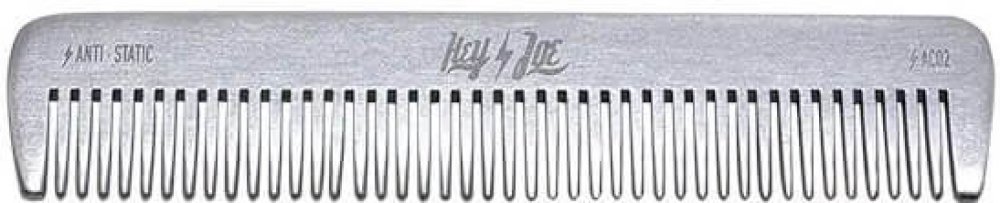 Prémiový antistatický hřeben na vlasy španělské značky Hey Joe. Ručně zpracovaný z hliníkové slitiny nejvyšší kvality. Má charakteristický zaoblený tvar zubů, což zamezuje podráždění pokožky. Je speciálně navržený pro stříhání vlasů na bocích a na šíji. Velikost hřebenu je 17,7 x 2,6 cm. Vyrobeno ve Španělsku.