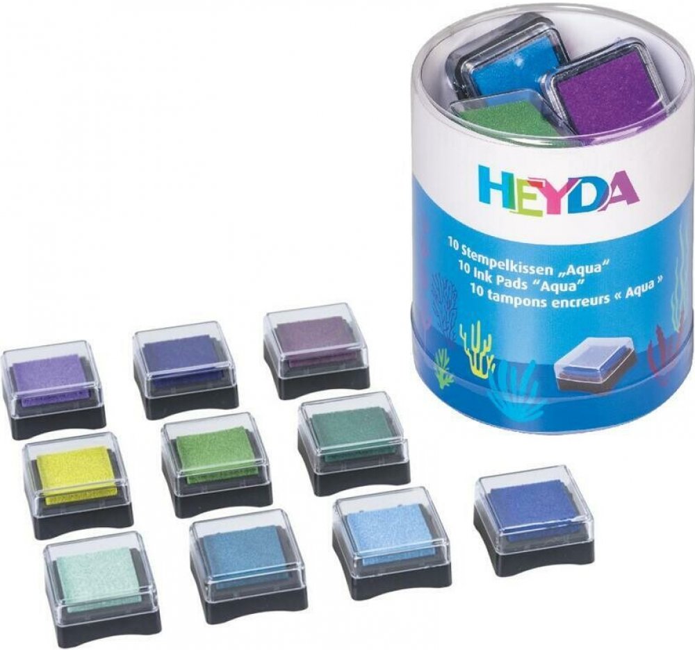 Sada barevných polštářků, které obsahují pigmentovou razítkovací barvu na olejovo-vodní bázi. Barvy neobsahují kyselinu. Jsou určené na savé papíry a kartony. Rozměr 2,3x2,3cm. Polštářky jsou vystouplé cca 3mm. Nevhodné pro děti do 3 let. Zakupte produkt Heyda Razítkovací polštářky 10ks VODA z kategorie Výtvarné potřeby | Kreativita | Razítka | Razítkovací polštářky od výrobce Heyda za cenu 125 Kč...